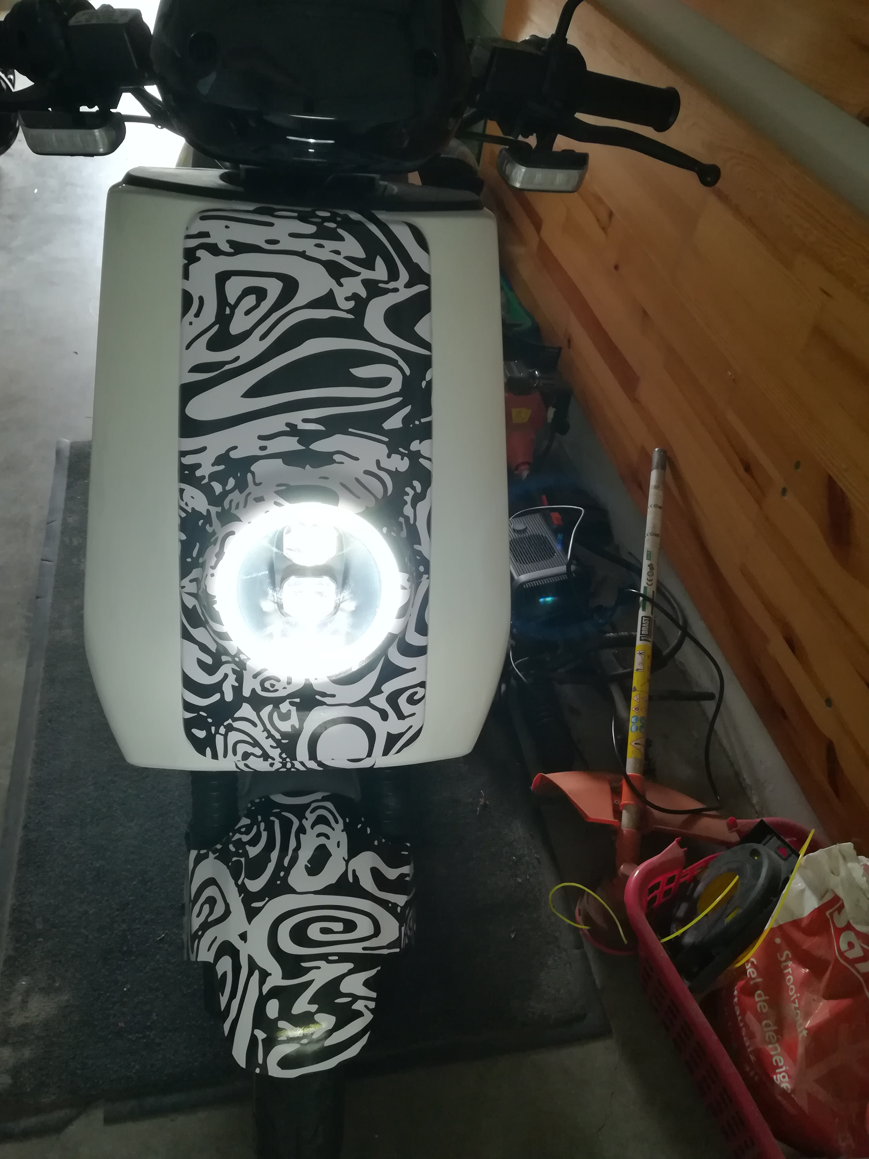 Hab die Front (an der Seite) auch noch etwas umgestaltet mit sonen Reflexstickern aussen Internet fürn paar Euro. Gefällt mir schon ganz gut. Und naja, ersma gucken, wie die halten.