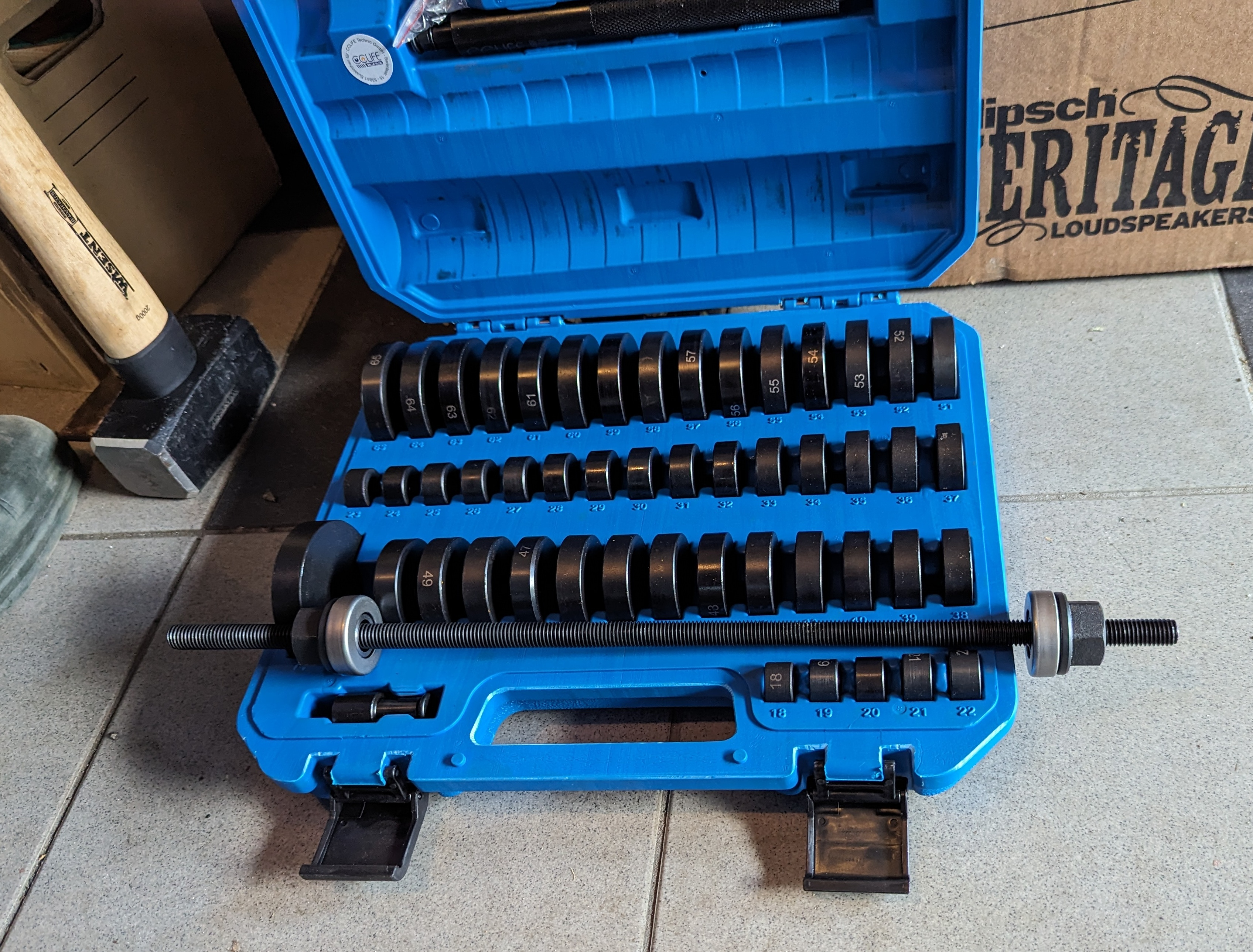 Das neue Lager oben (nun Kegelrollen- statt Kugellager):