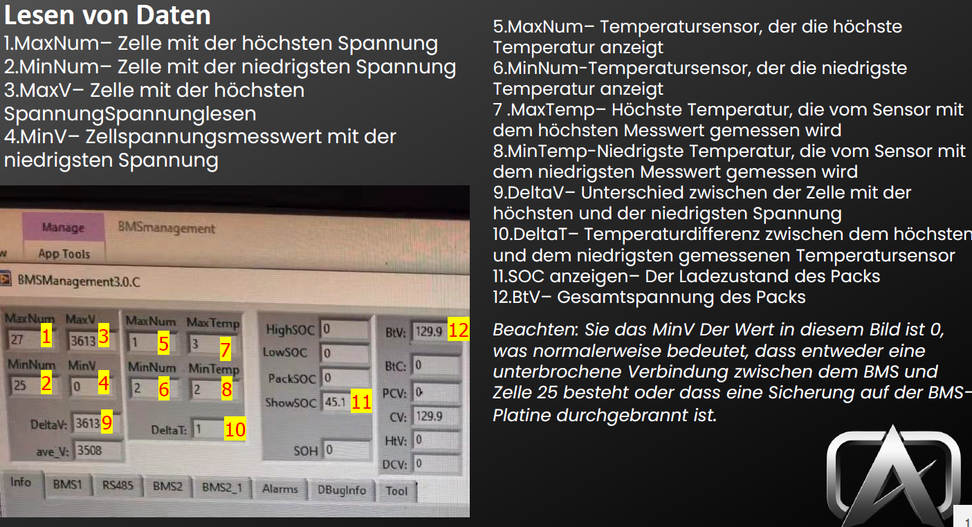 Vielleicht bekommt noch ein paar Infos über die BMS Software raus. Du kannst die Software auch auf chinesisch umstellen . Dann kann man alle Felder übersetzen.