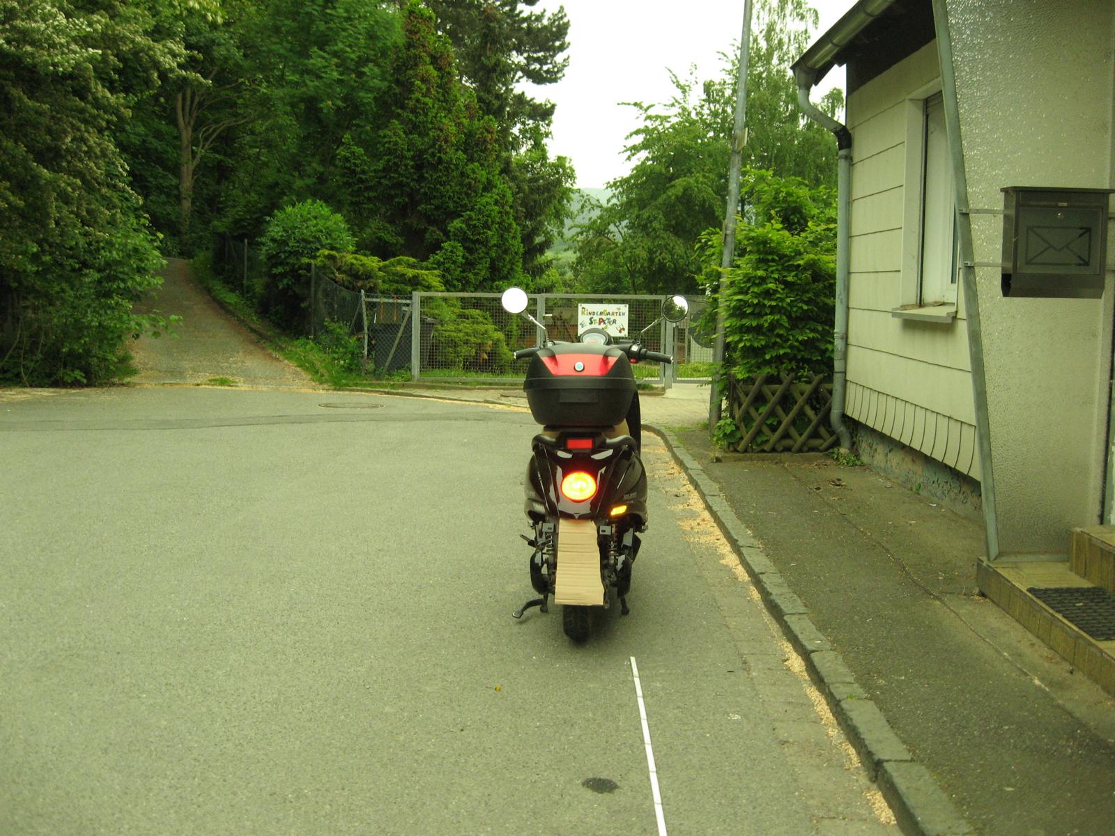 Na ja, zumindest aus der Perspektive, die das Foto zeigt und aus der der Roller auch oft wahrgenommen wird, kann man den rechten (Original-)Blinker nicht erkennen, also auch sehr schlecht wahrnehmen, dass man rechts abbiegen wird. Oder sehe ich das flasch?joe70 hat geschrieben: Fr 18. Mai 2018, 17:40 Wenn jemand 5 oder 10m hinter einen fährt. Was ist da schlecht bei den Blinkern zu sehen ?