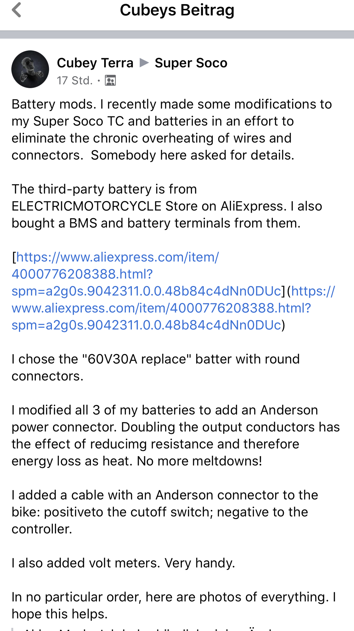 ein Bekannter, auch ein Soco TC-Fahrer berichtet: