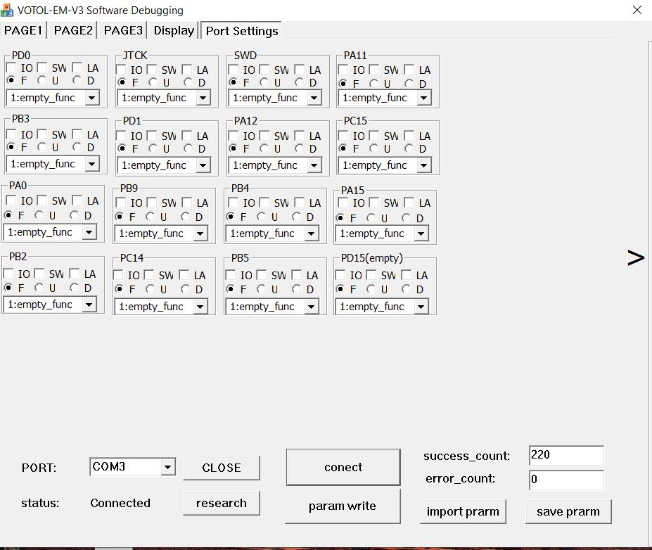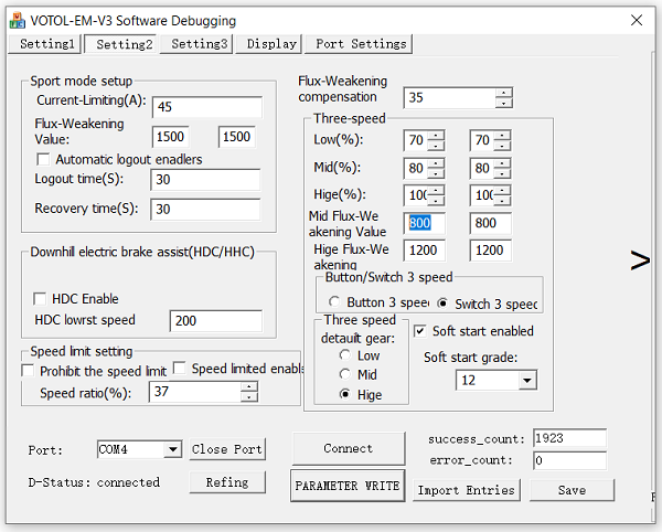 Votol EM-150/2 - completely new controller Stand heute, die Software läuft, der R232/USB Treiber ist auf COM4. Die Parameter & Port Settings werden noch interessant werden.