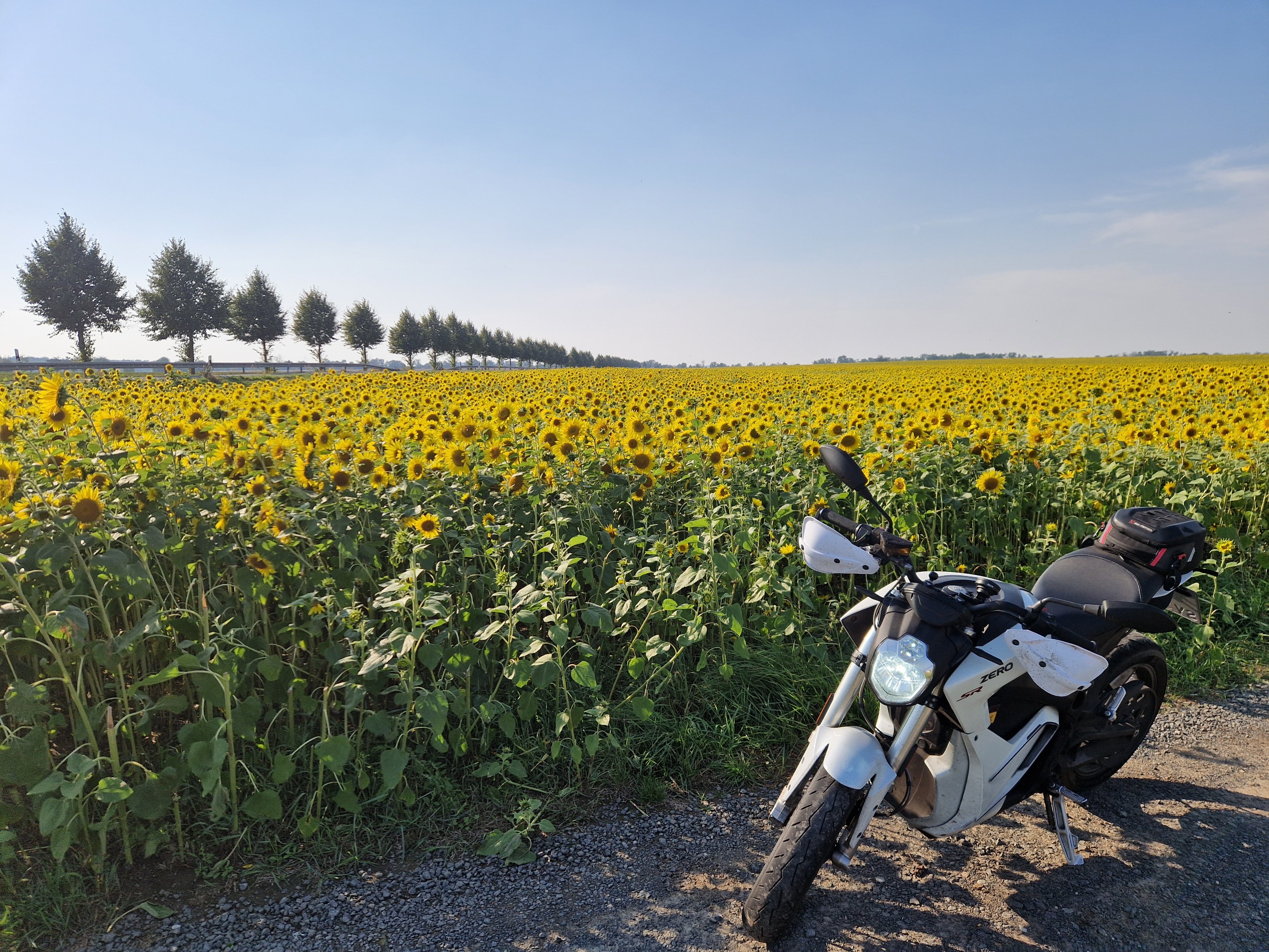 So da habe ich doch gestern auf der Heimfahrt tatsächlich noch ein blühendes Sonnenblumenfeld gefunden.