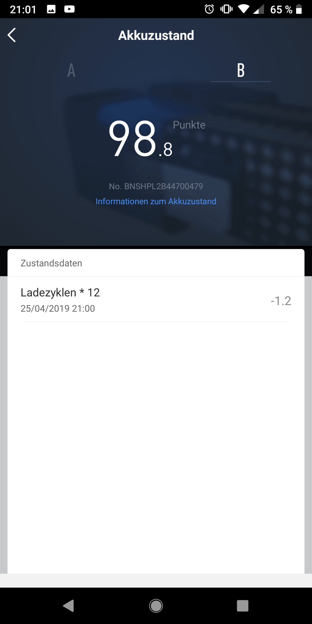 - „A“ bezieht sich auf Akku A (unter dem Durchstieg), „B“ bezieht sich auf Akku B (unter der Sitzbank)