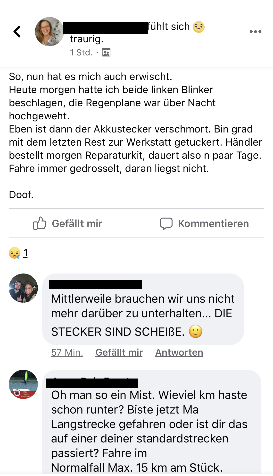 @Tomkat, ist denkbar und klingt plausibel, Kontaktschwäche, nur was ich nicht verstehe - wieso kommt es so früh vor - ich hatte meine TC erst 1,5 Monate im Einsatz, schon war es passiert, und zwar besonders heftig (siehe Bild unten). Der Stecker saß richtig bis zum Anschlag drin, es gibt ein Video, wie ich ihn rausziehen versuche. Die Gummimischung bzw Plastik war damals deutlich weicher, als beim 2.ten, der ist jetzt an den Hauptkontakten angeschmolzen, das hat man gleich nach Umbau erkennen können, wie das fortschreitet von Fahrt zu Fahrt. Verstehe nur nicht, falls es wirklich größtenteils korrosionsbedingt passiert, warum kommt keine Empfehlung durch Hersteller, Importeur oder Händler dort mit Kontaktspray vorzubeugen, braucht man echt 2 Jahre dafür, um darauf zu kommen? Und gibt es kein besseres Material für die Stifte, dass die weniger beschlagen durch Feuchtigkeit oder was auch immer. Der Mensch fliegt ins Weltall, aber man schafft es einfach nicht mit einer 45 km/h Maschine über 2 Berge 30 km weit zu kommen, das Bermuda-Dreieck mitten in Europa, wir haben es geschafft! Yes, we can