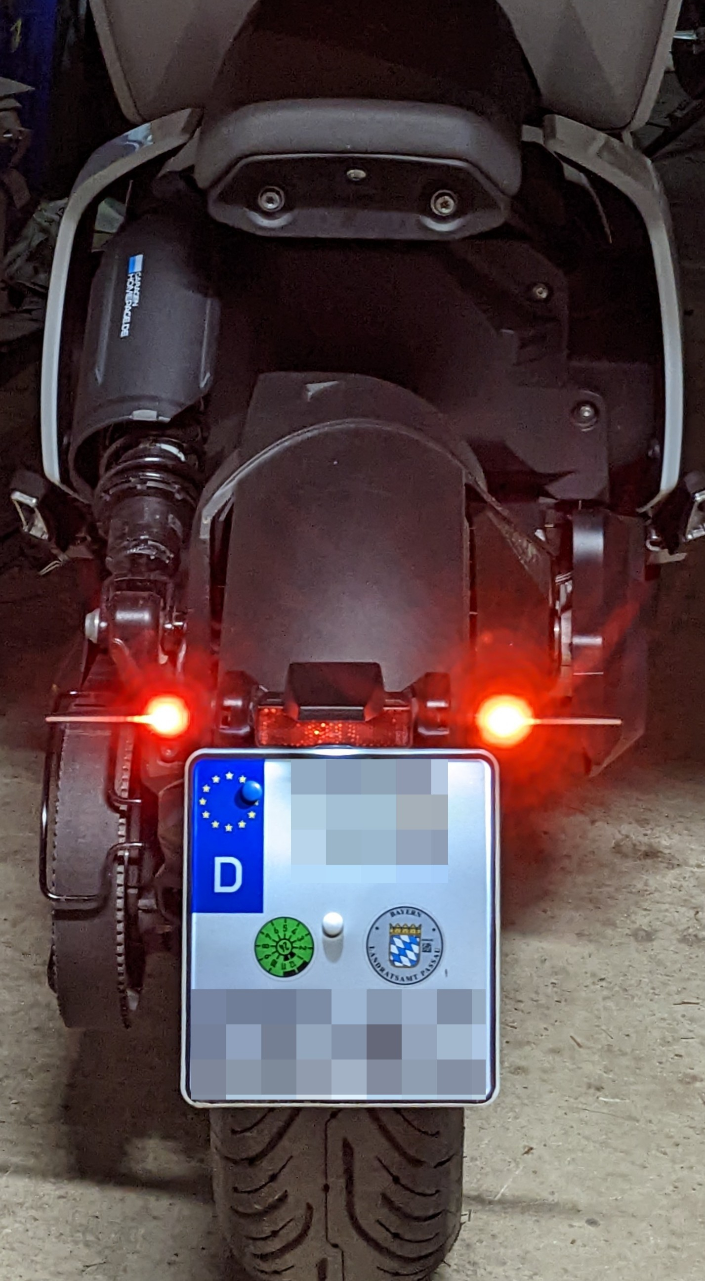 Rück- und Bremslicht sind sehr grell, wenns nicht mehr taghell ist. Ungewohnt ist die fehlende Fläche.