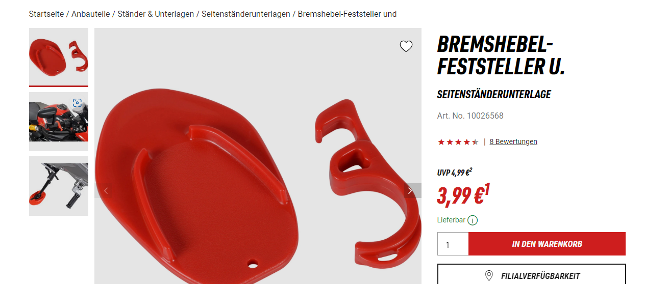 Aha, das ist mal etwas erfreuliches für uns Zweiradfahrer, die an einer abschüssigen Strasse oder auf einem Platz parken müssen.