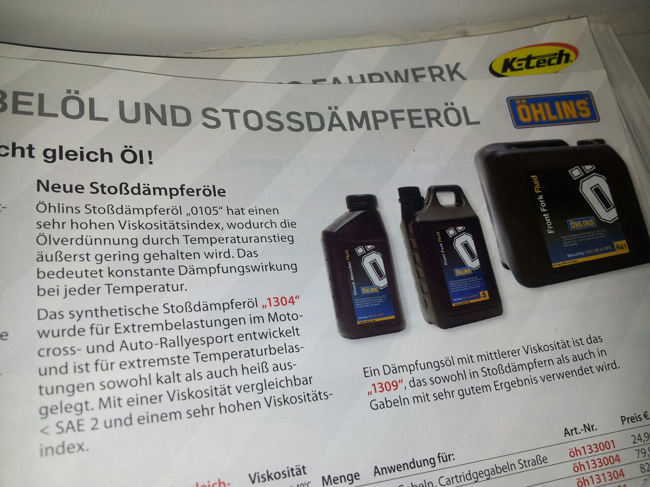 Õhlins macht sicher auch gute Gabel Öle Ich werde das bei Gelegenheit mal austesten.