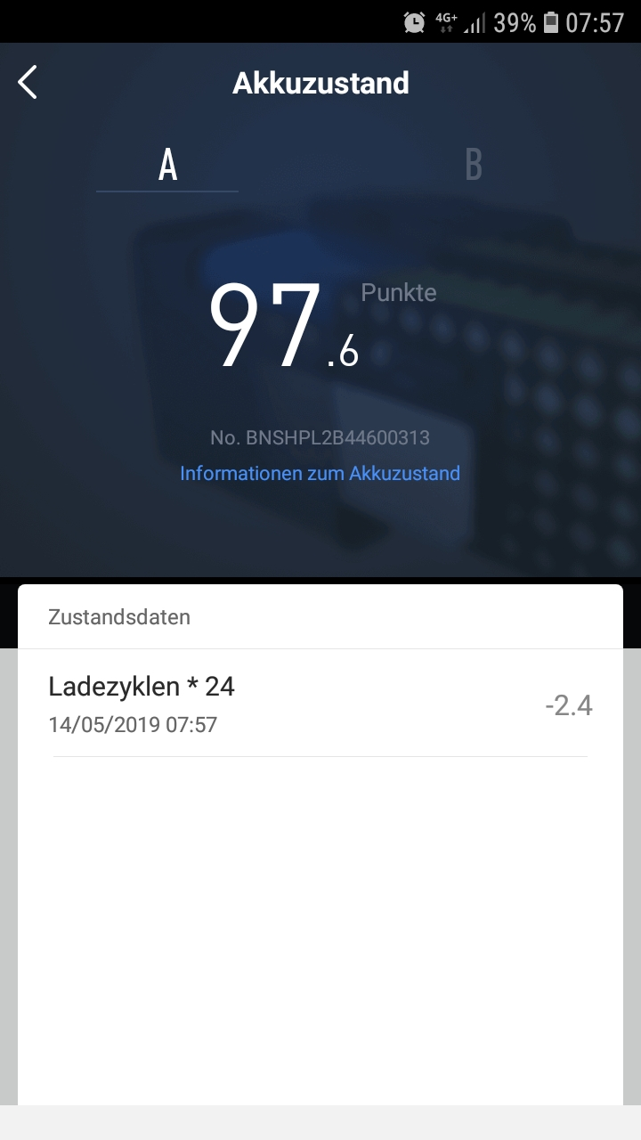 „A“ bezieht sich auf Akku A (unter dem Durchstieg), „B“ bezieht sich auf Akku B (unter der Sitzbank)