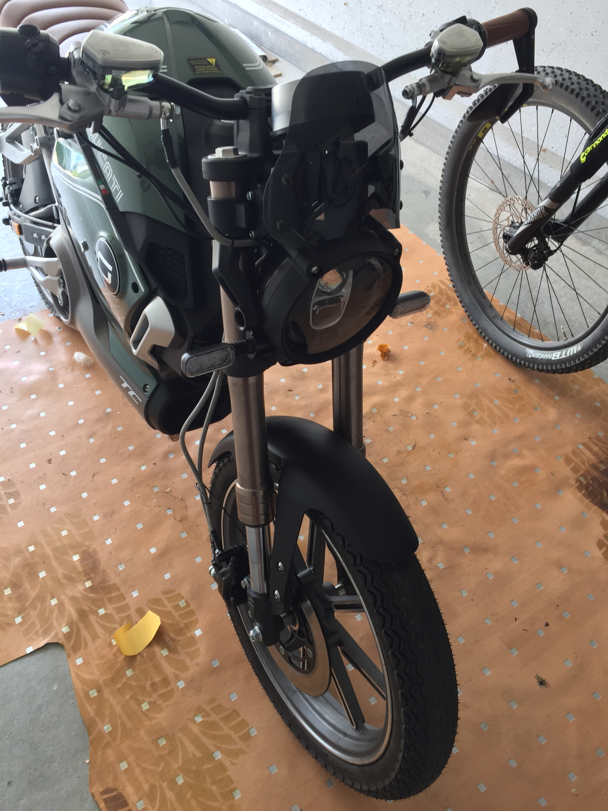 Ansonsten wurde die Front schwarz Matt lackiert, wie auch das Schutzblech vorne.