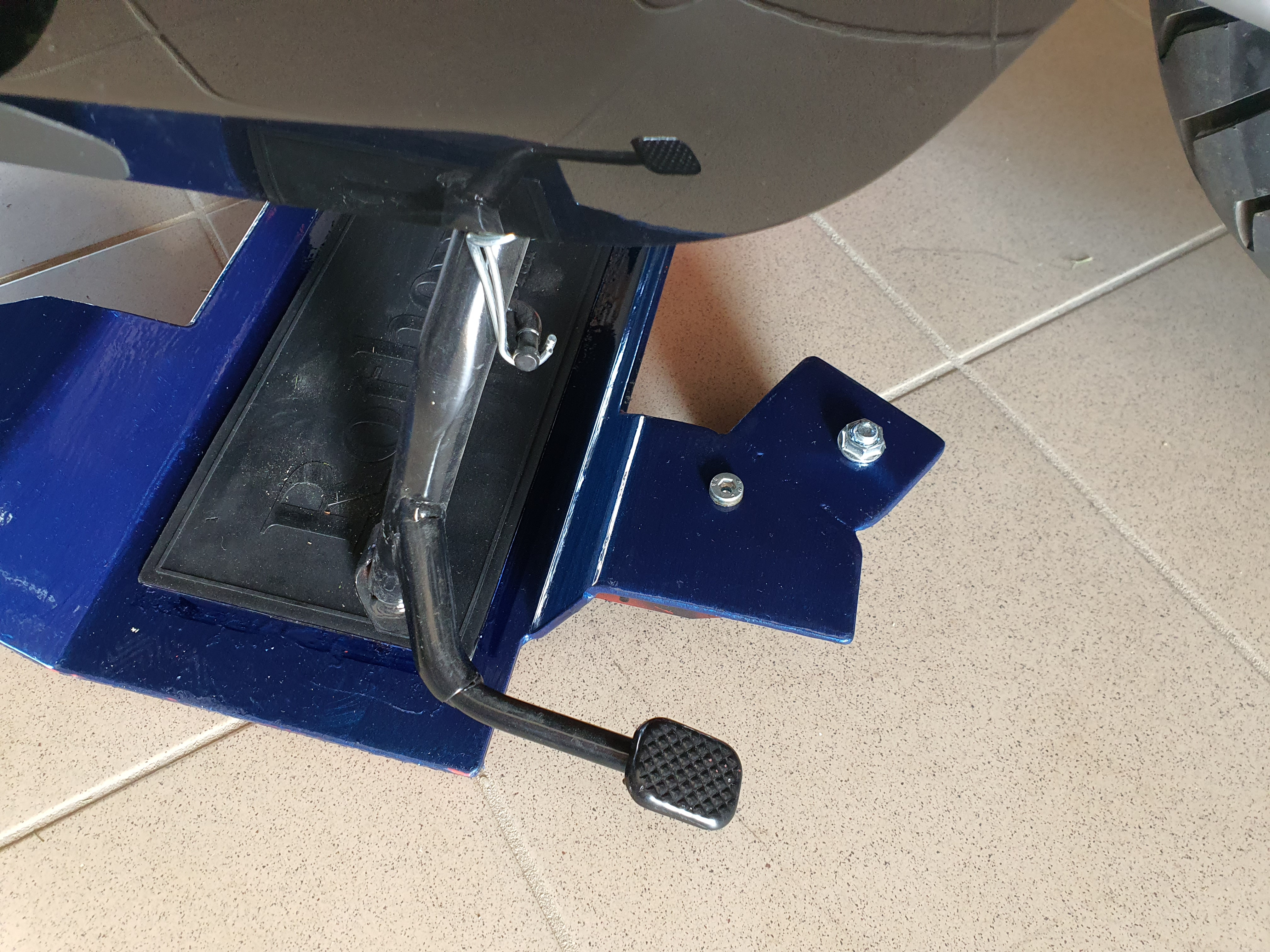 Mein NQI GTS Sport, Seitenständer geändert damit er nicht mehr so absteht, Steinschlagschutzfolie drunter und Unterlegscheibe aus V2A montiert wegen dem doch sehr grossen Spiel, Louis Spiegel und Sitzlehne. Wegen der größeren Räder war noch an der Rangierhilfe ein wenig Schweissarbeit nötig um das eine Rollrad zu versetzen damit Platz ist für den Fusshebel.