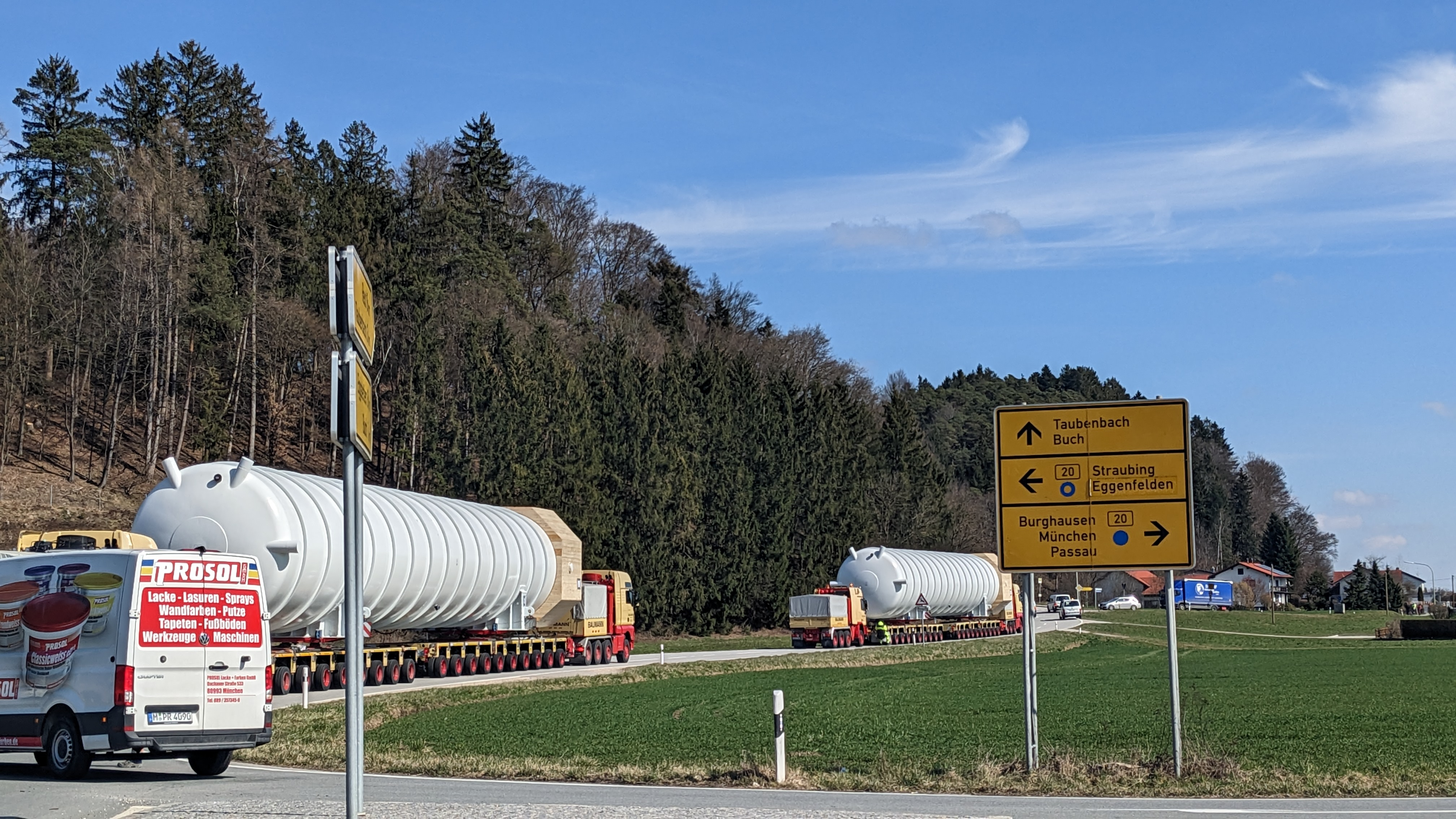 Der riesige Schwertransport war in unserer Gegend auf teilweise kleineren Landstrassen quer durchs Hinterland im Zickzack unterwegs, um sein Ziel erreichen zu können.