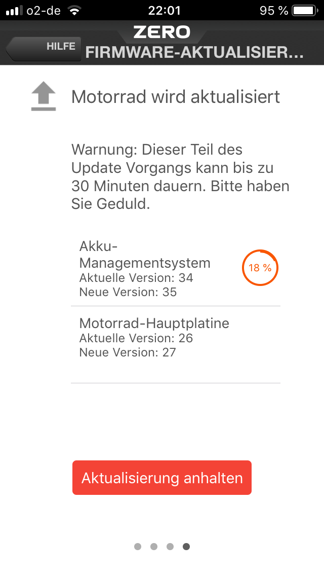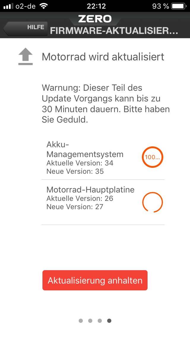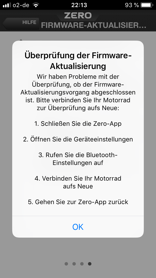 Tja, nach dem Update beim Händler gab es Montag Abend diese Woche schon wieder die gefürchtete Meldung auf der Zero-App: Es steht ein Update bereit! Doch diesmal ging es beim Weiter klicken auch bei mir WIRKLICH weiter