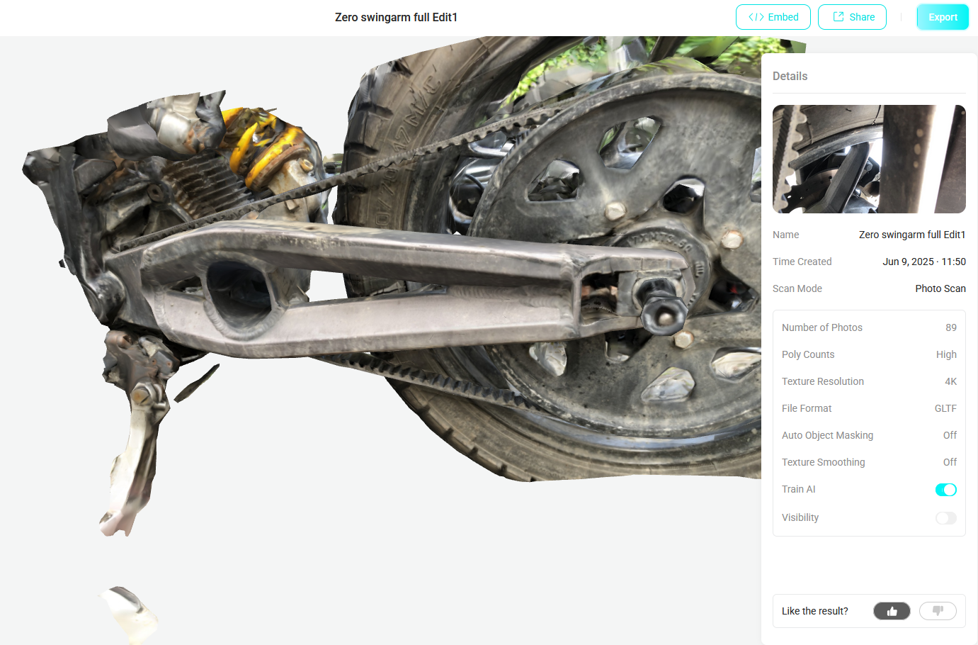 Wer kann erraten, was mein Sohnemann (modelliert fürs Leben gern in 3D) und ich mit diesem heute von mir am dreckigen Mopped und dem alten Eiphone per Foto-3D-Scan und unter 100 Fotos hergestellten 3D Modell vorhaben