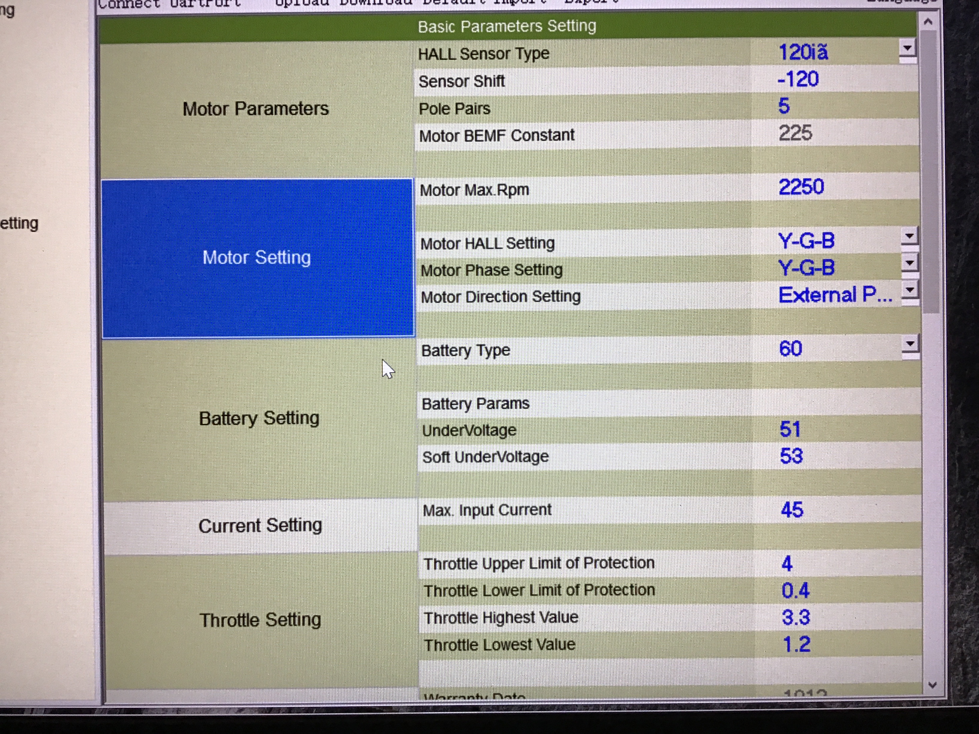 I am a little confused. The parameter motor design rpm does not exist if I download the data from the standard controller 60122. Is it the Motor Max RPM you changed to 1890???