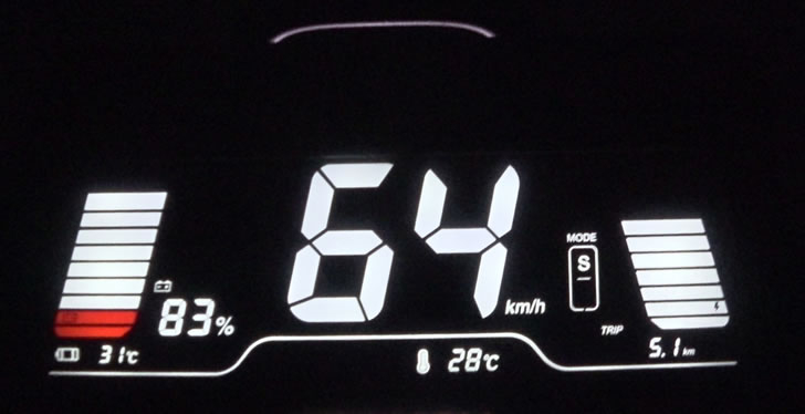Rear tire 90/80-12, so maximum possible speed for "Tromox Mino B" 58km/h*449mm/410mm=63.5km/h.