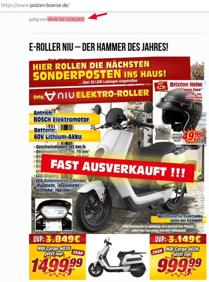 Re: Großer Posten Niu E-Roller 6026 u. 6035 kommt am 31.01.2025 auf den Markt.