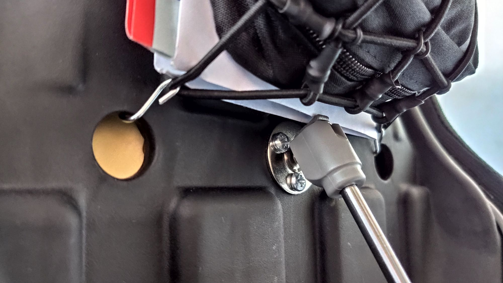 Ich habe eine Lösung gesucht, die Sitzbank so aufgeräumt wie möglich zu gestalten und gleichzeitig "geklappere" durch mitgeführtes zu minimieren.