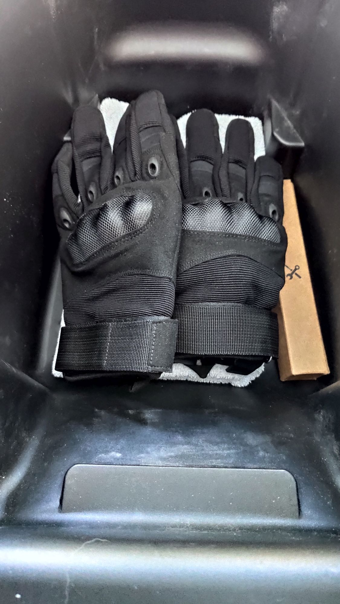 In einem der Handschuhe ist noch die eigentliche Haltevorrichtung der Handyhalterung, die ich nur sporadisch verwende.