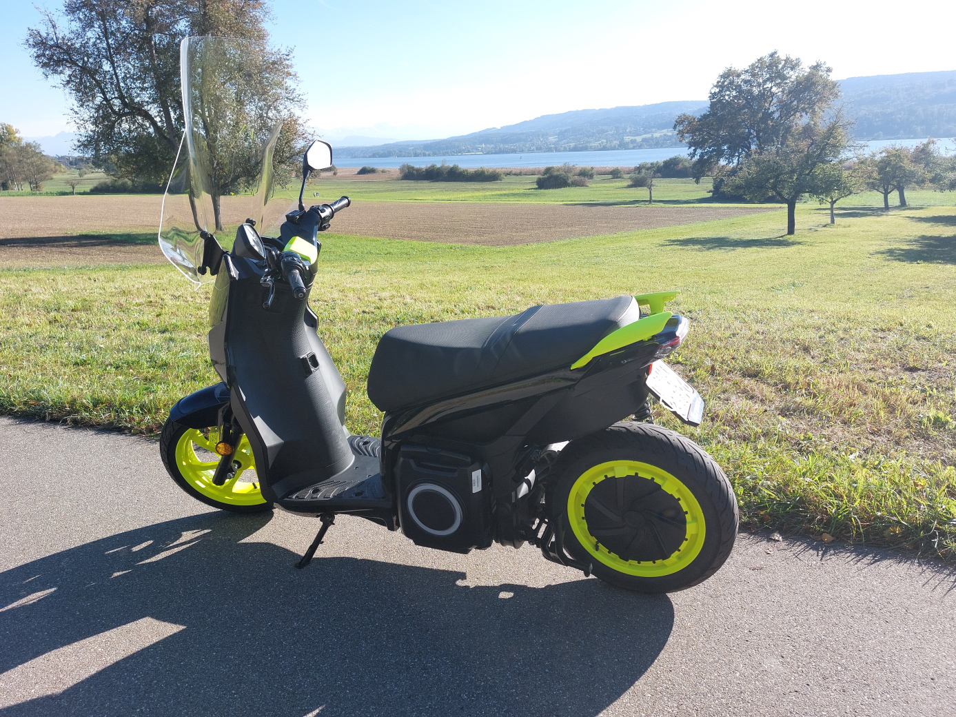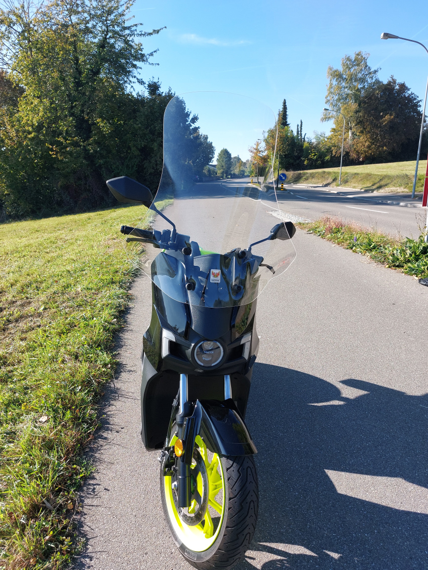 Neu ist von mir bereits der Windschutz (dazu kommt der Bausatz) angebracht worden. Der ist etwas höher als das Original von Etrix, hat aber einen zusätzlichen Schutz auf Handgriffhöhe und ist absolut transparent, also erlaubt (zumindest was die Strassenverkehrserverordung besagt). Das alles hat mich mit 171cm Lebensgrösse überzeugt.