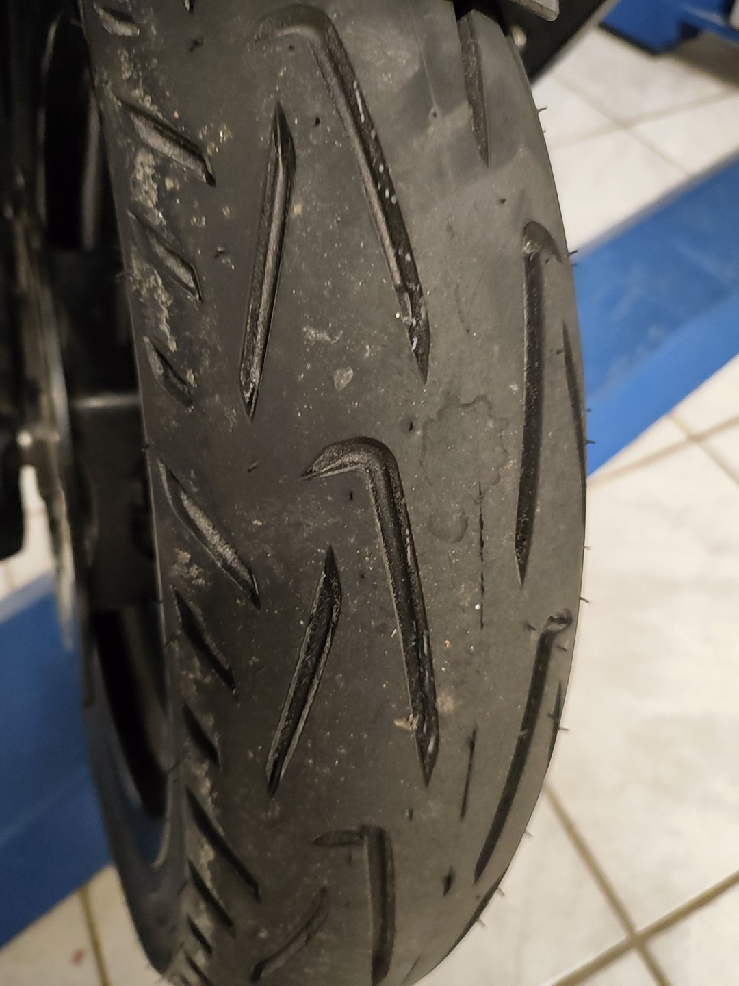 Sowas ist eigentlich bei den großen Herstellen nicht mehr stand der Technik, aber naja irgendwie muss der Preis ja zustande kommen. Positiv ist erstmal das er mit 5mm, 1mm mehr Profil hat als der Pirelli. Gewicht ist 300g schwerer 4300g zu 4000g Pirelli. Fährt bisher sehr gut schauen wir mal. Memo für mich Tachostand 17300km .