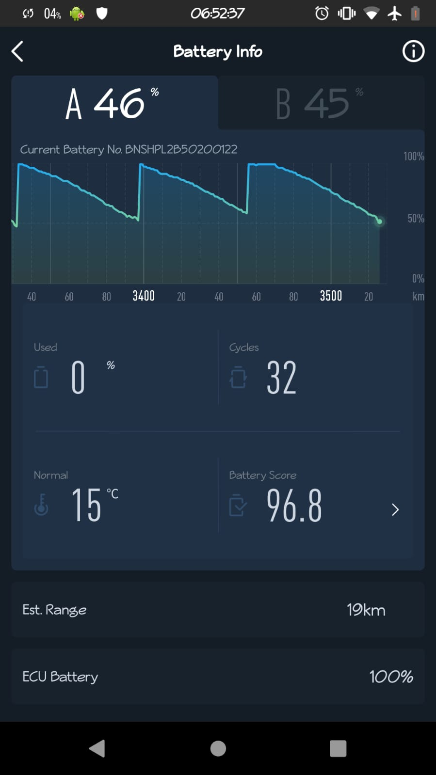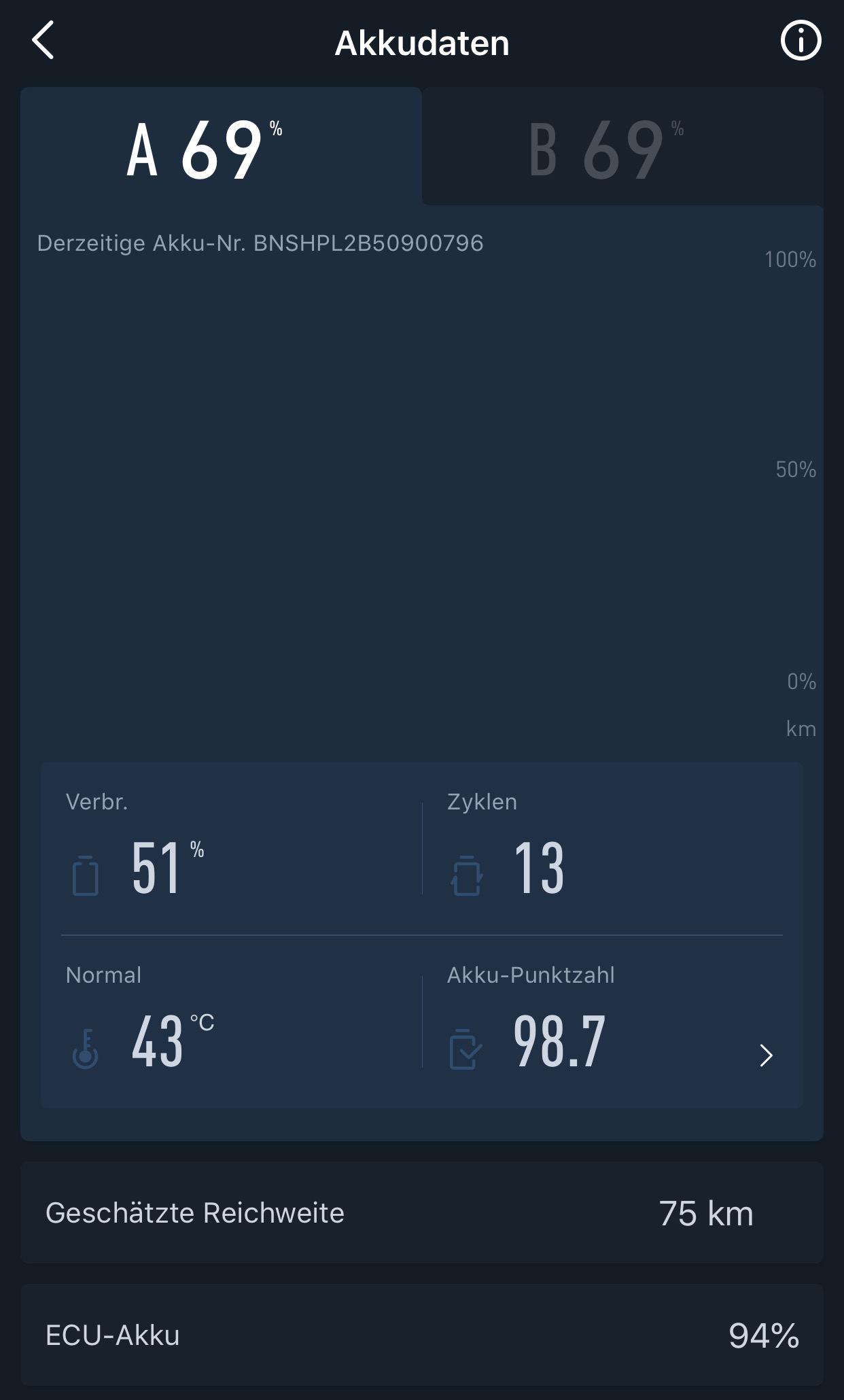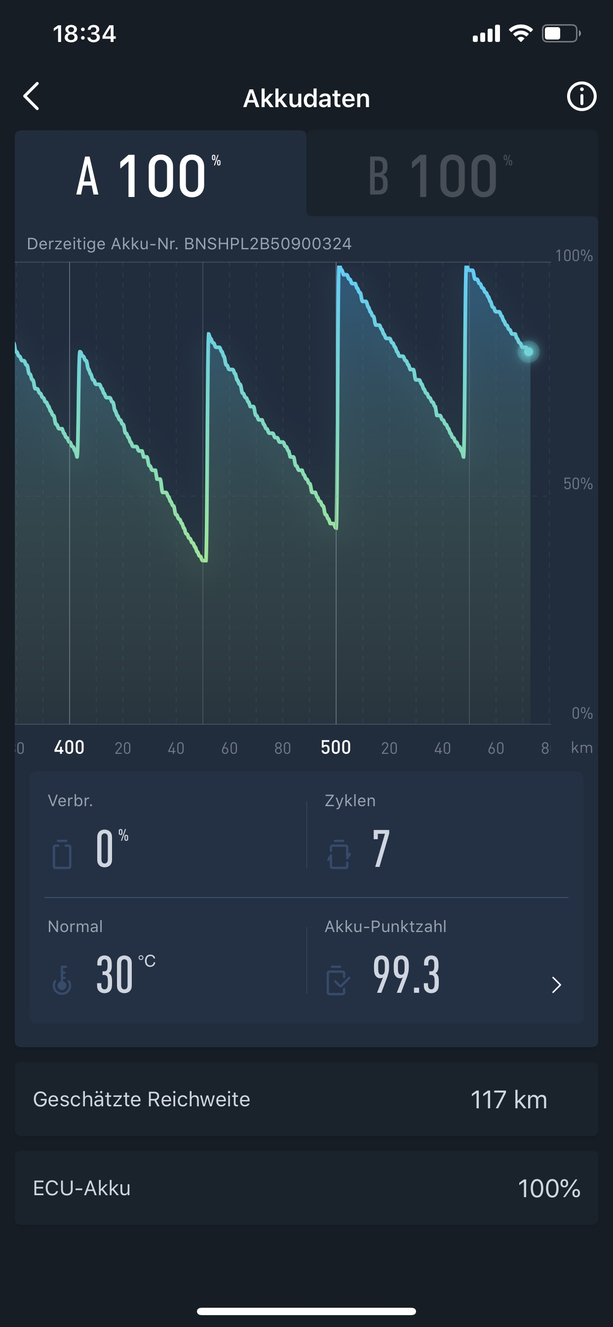 Zeit für ein Update: Stand jetzt habe ich 3.170 km und 37 Ladezyklen (entsprechend 96,3 Punkte) mit meinem NGT.