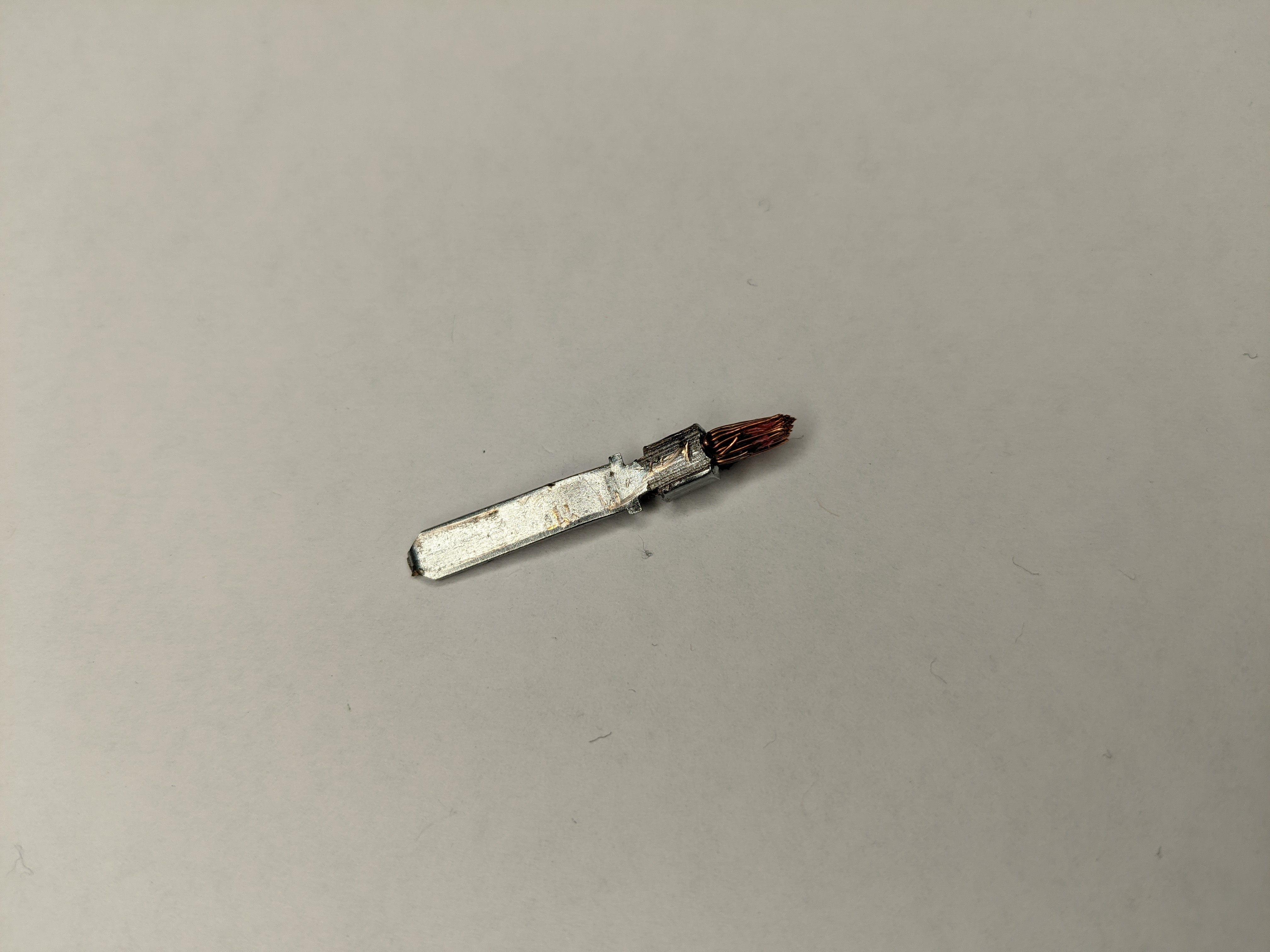 Ich habe mir die Mühe gemacht, den alten Stecker etwas zu zersägen, um mir die Verbindung zwischen Leitung und Stecker anzuschauen... Ich habe euch dazu Bilder gemacht. Für mich ist die Verengung der eindeutige Flaschenhals.