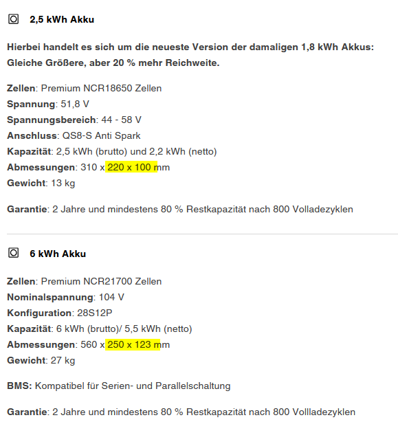 Vllt. könnte man noch einen nur halb so großen, halb so schweren Akku bauen (lassen), dann könnte man 2x3kWh Akkus in der Wildfire