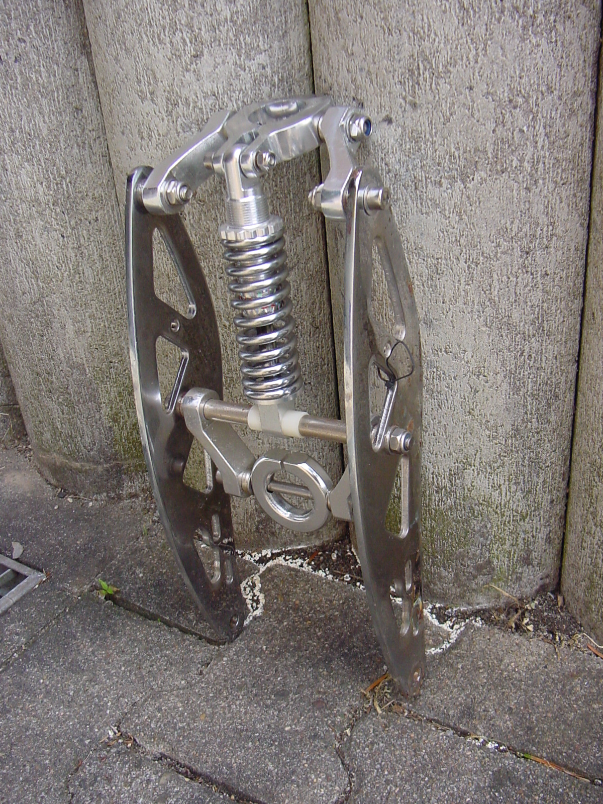 Und bei der Vollbremsung merkt man jetzt auch deutlich die weit höhere Präzision der kugelgelagerten Vordergabel. Jetzt habe ich nur Angst um das Lenkrohr, an dem ich mich ja abstüzen muss beim Bremsen