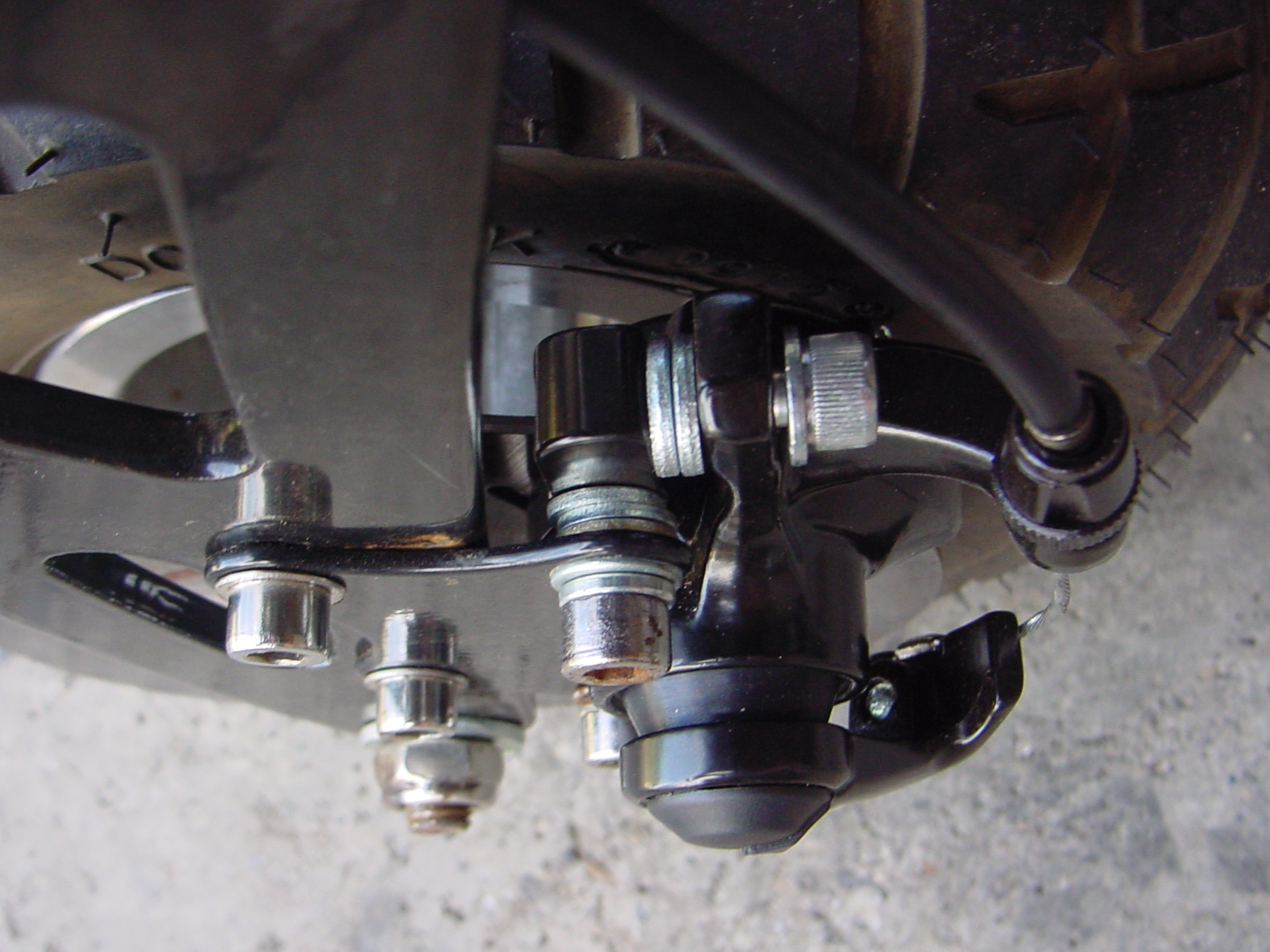 1. Rad und Bremssattel weg. Der Bremszug ist ggf. mit einem Kabelbinder an der alten Gabel fest, den Kabelbinder muss man dann abzwacken