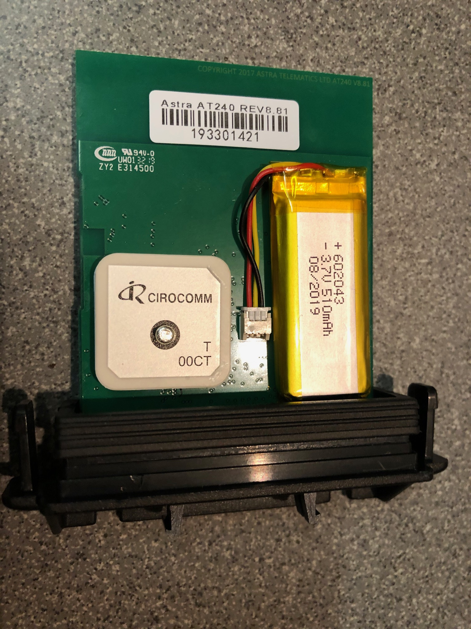 Das Kommunikationsmodul ist nicht im Akkupack, sondern befindet sich im Roller vorne oberhalb der Federgabel. Es ist ein Standard-Modul der Firma astra telematics. Die SIM-Karte befindet sich ebenfalls darauf (siehe Bild).pfeifferl hat geschrieben: Do 30. Jul 2020, 13:04 Die Frage ist auch, wo steckt das Kommunikationsteil bzw. die SIM? Im Roller oder im Akkupack? Wenn ich den Akku rausnehme, hat der Roller ja keinen Strom...