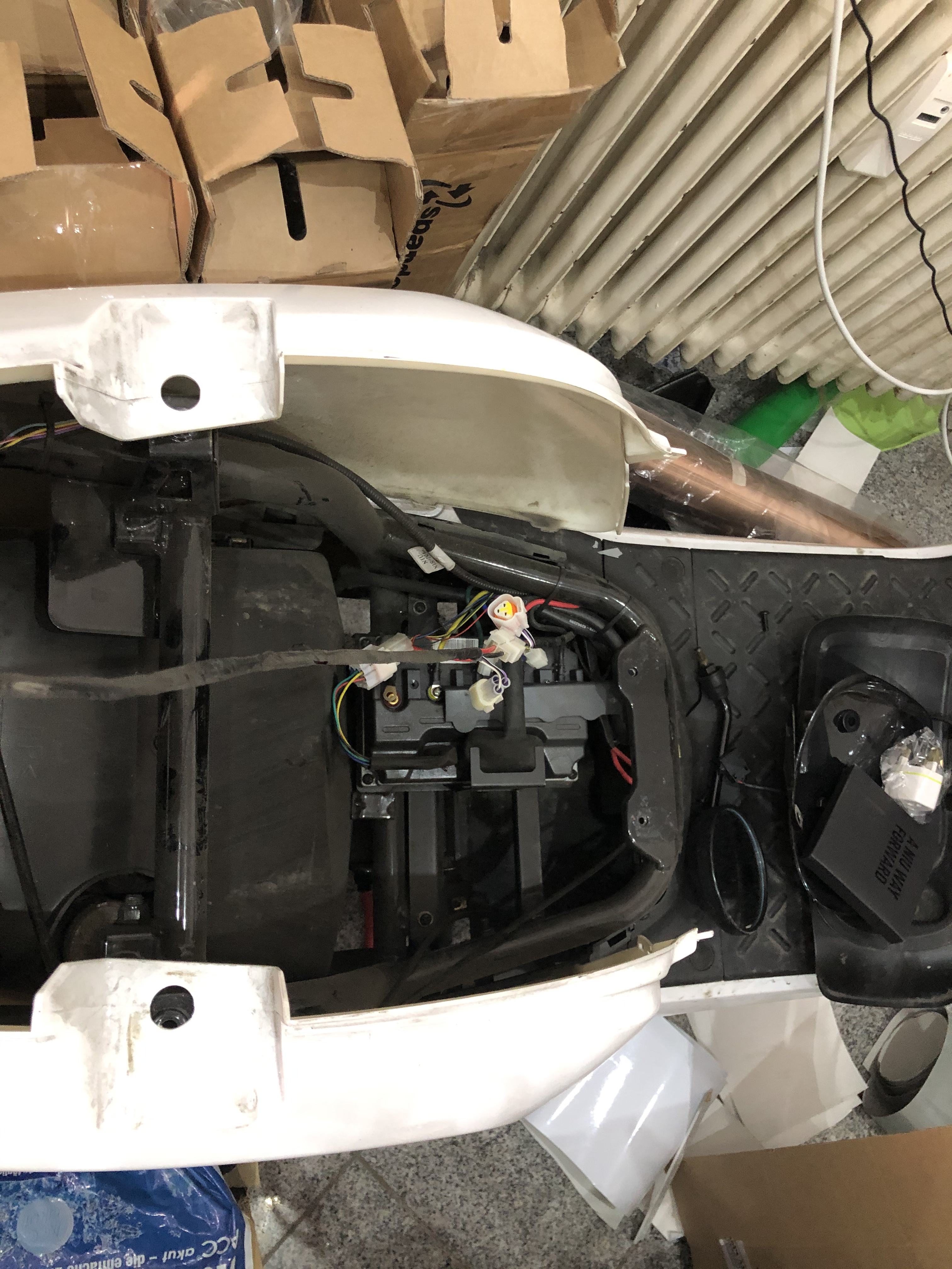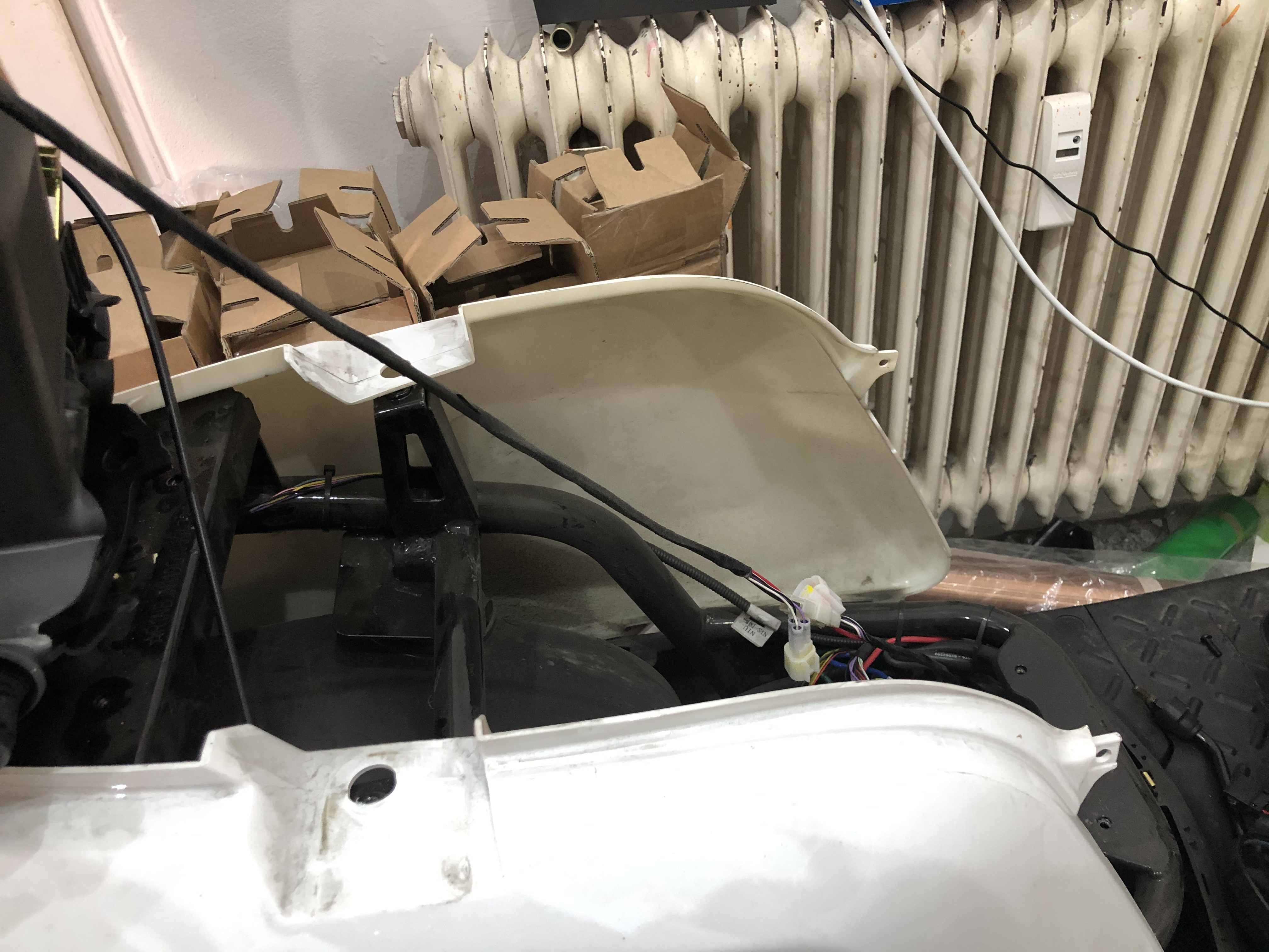 Hatte gestern Glück und der Händler (Lucas) in Nürnberg hat für mich mal kurz einen Unfaller geöffnet. Er hat wohl auch schon mal zwei Lader (der kleine 4A) links und rechts neben den unteren Akku verbaut (innerhalb der Verkleidung!?), in Reihe geschaltet bzw. verlötet und damit mit 8A geladen. Das wäre mir persönlich zu „heiß“, aber der große Lader würde theoretisch in die leeren Ausbuchtungen neben der Akkuschale passen. Müsste man halt fest verbauen und sich einen zweiten Lader holen. Belüftungstechnisch müsste man dann die Abluft des Gebläses nach oben führen. Noch Theorie, aber reizen würde es mich schon. Mit fest verbauter dicken 12A-Berta an die Autoladesäule fahren, das Typ 2-Kabel unter Sitz anstecken und Feuer frei...ZZR 1100 Racer hat geschrieben: Do 11. Jun 2020, 17:38Vielleicht baue ich mal die obere Wanne unter dem Sitz aus und schaue nach wie es da nach unten weiter geht. Vielleicht bekommt man den Lader ja doch noch irgendwo verbaut wenn man aus dem Kuststoff was raus nimmt. Wenn man sich den Roller bauformtechnisch anschaut, müsste da eigentlich noch Platz sein.