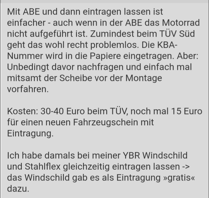 Ich würde schon gerne bei der Auswahl zum Kauf eines Rollers u.a. wissen wollen, wenn bestimmtes, dcurchaus gängiges Zubehör, wie z.B. eine Scheibe, mit Zulassung nicht lieferbar ist, auch wenn ich das Zubehör erst päter dazu kaufen möchte und es mir beim Kauf noch nicht wichtig erschien.