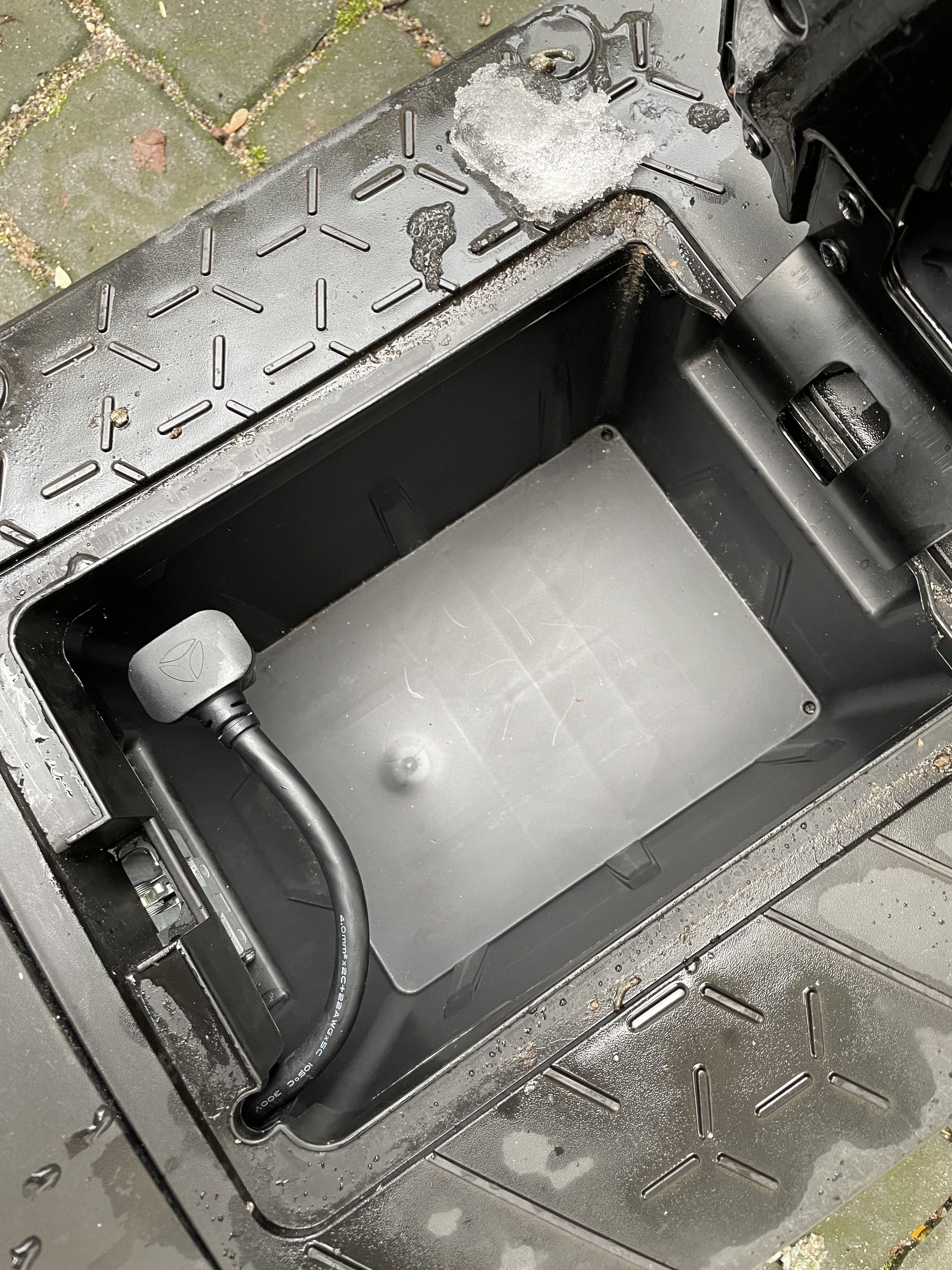 Also was die Undichte des Akkufachs betrifft habe ich mir Abhilfe geschaffen. Einfach von Tesa Dichtungsband gekauft und unter dem Deckel angebracht. Ab jetzt ist alles dicht. Hatte bei dem Schnee und Regen der letzten Tage ohne Abdeckung nicht ein Tropfen im Akkufach.