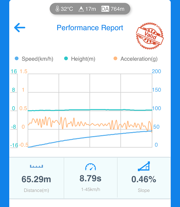 0-45 km/h nach GPS exakt 8,79s