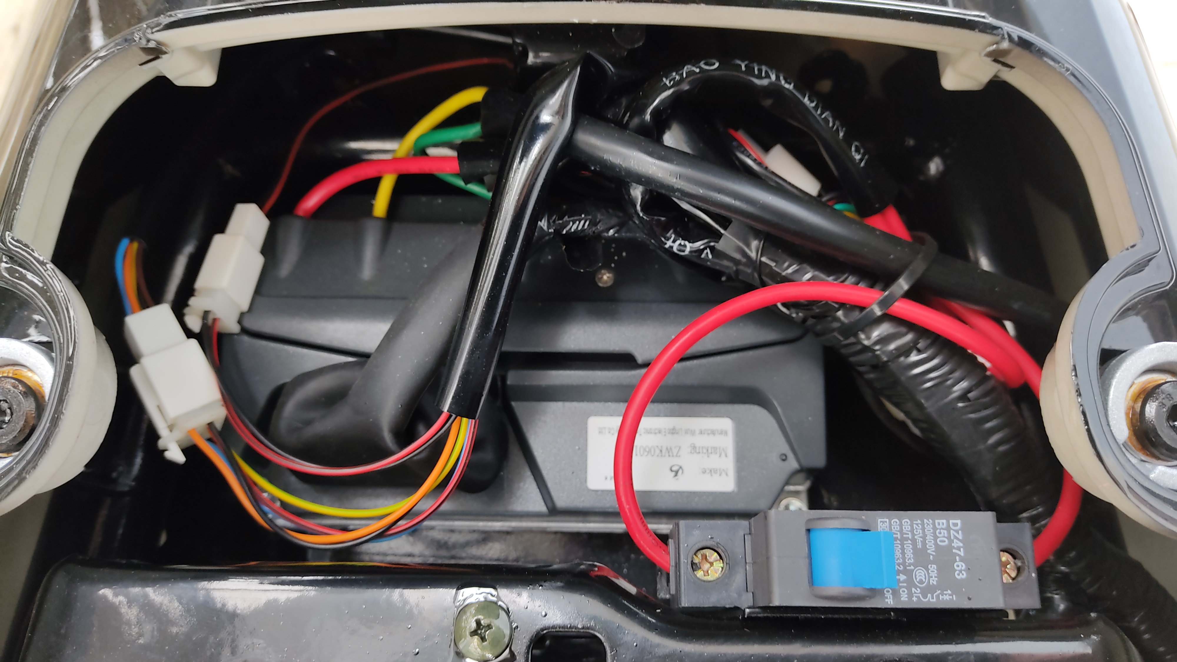 Das bei meinem Tori Swift schwarze Steckerkabel ist unter der Hauptsicherung/Hauptschalter in den Kabelbaum mit eingebunden. Da ist also nicht wirklich viel Spielraum. siehe 3.Foto rechts