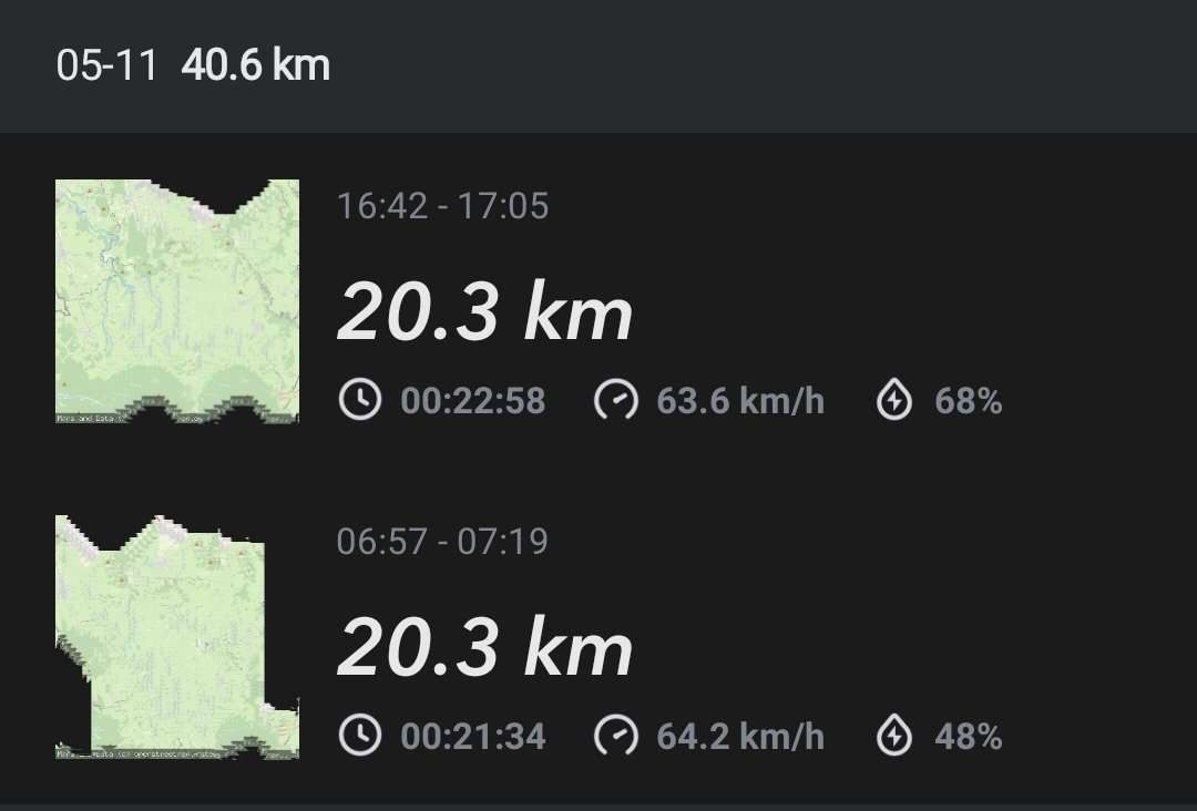 Ich schätze es auch so ein, bis zu einer Restkapazität von 20% kommt man bei einer normalen Überlandfahrt auf ca. 60km. Hier mal ein Beispiel meiner Pendelstrecke.