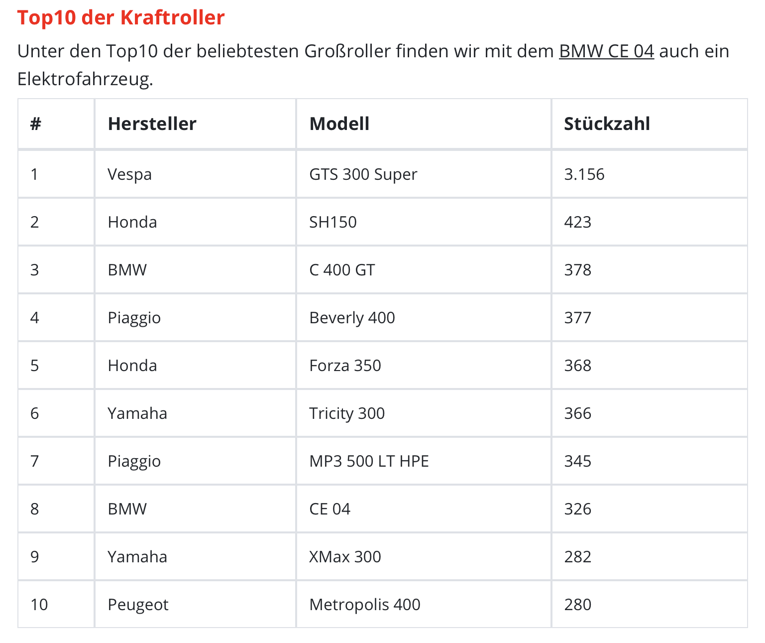 - Roller: BMW CE 04 (offen)
