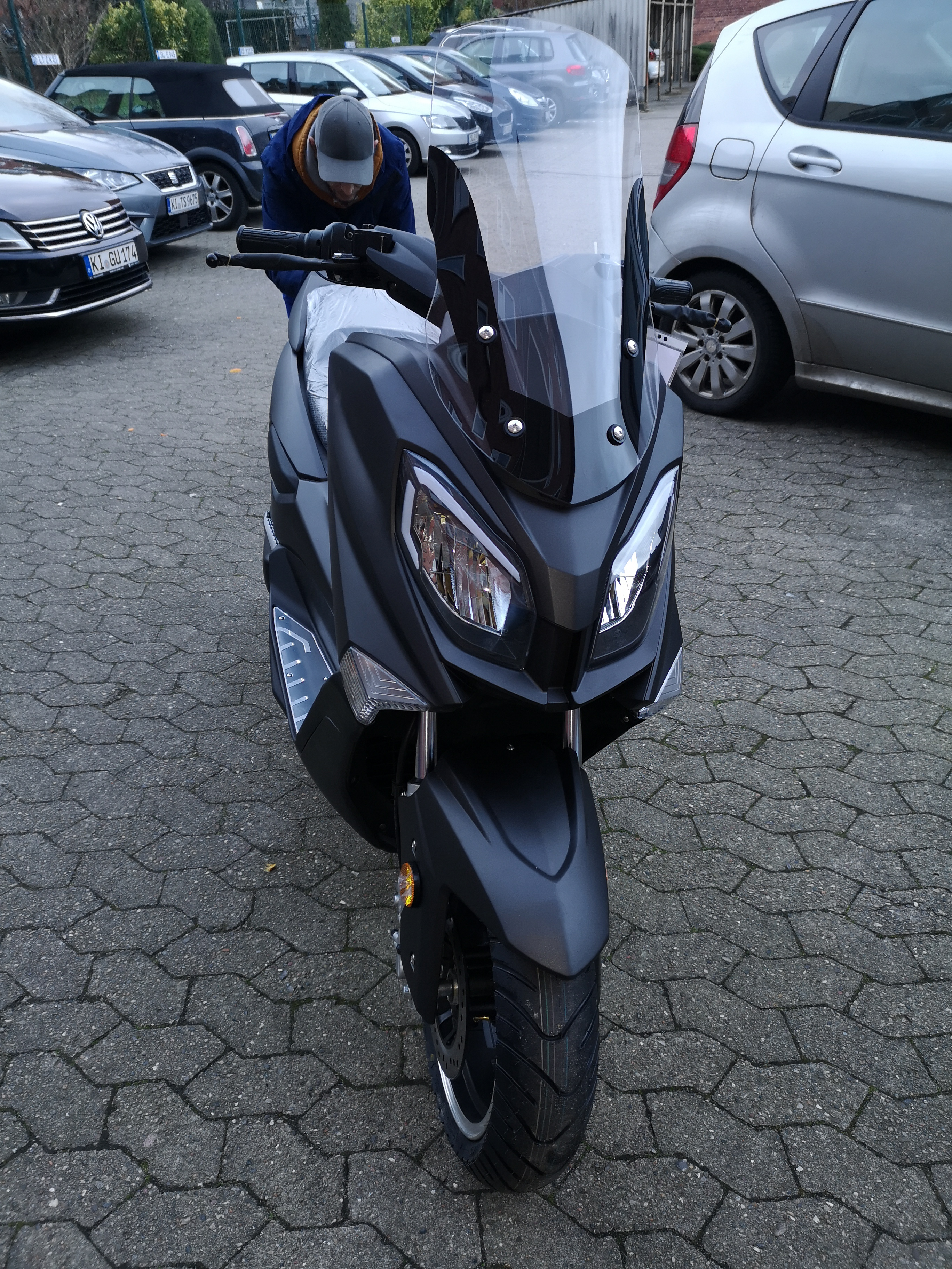 Also ich habe den Roller vorgestern von der Firma Trankvile abgeholt, aber bei dem unterirdischen Wetter bin ich natürlich noch nicht viel gefahren. Der Roller hat jetzt 34 km runter und der Akku steht jetzt bei 92% (ich weiss leider nicht mehr, was er direkt nach der Fahrt angezeigt hat). Dabei bin ich allerdings die meiste Zeit im Stadtverkehr gefahren und habe nur einmal kurz auf der Schnellstrasse bis 100 km/h beschleunigt. Dabei bin ich überwiegend mit Stufe 3 gefahren, weil es einfach den meisten Spass macht, die Beschleunigung ist wirklich Spitze. Was das Sitzen betrifft: Für meine 180 cm ist es ok (ist natürlich kein Vergleich zu dem 300er Kymco-Roller, den ich zur Zeit noch habe), größere Leute sollten ausprobieren, ob es für sie noch passt.