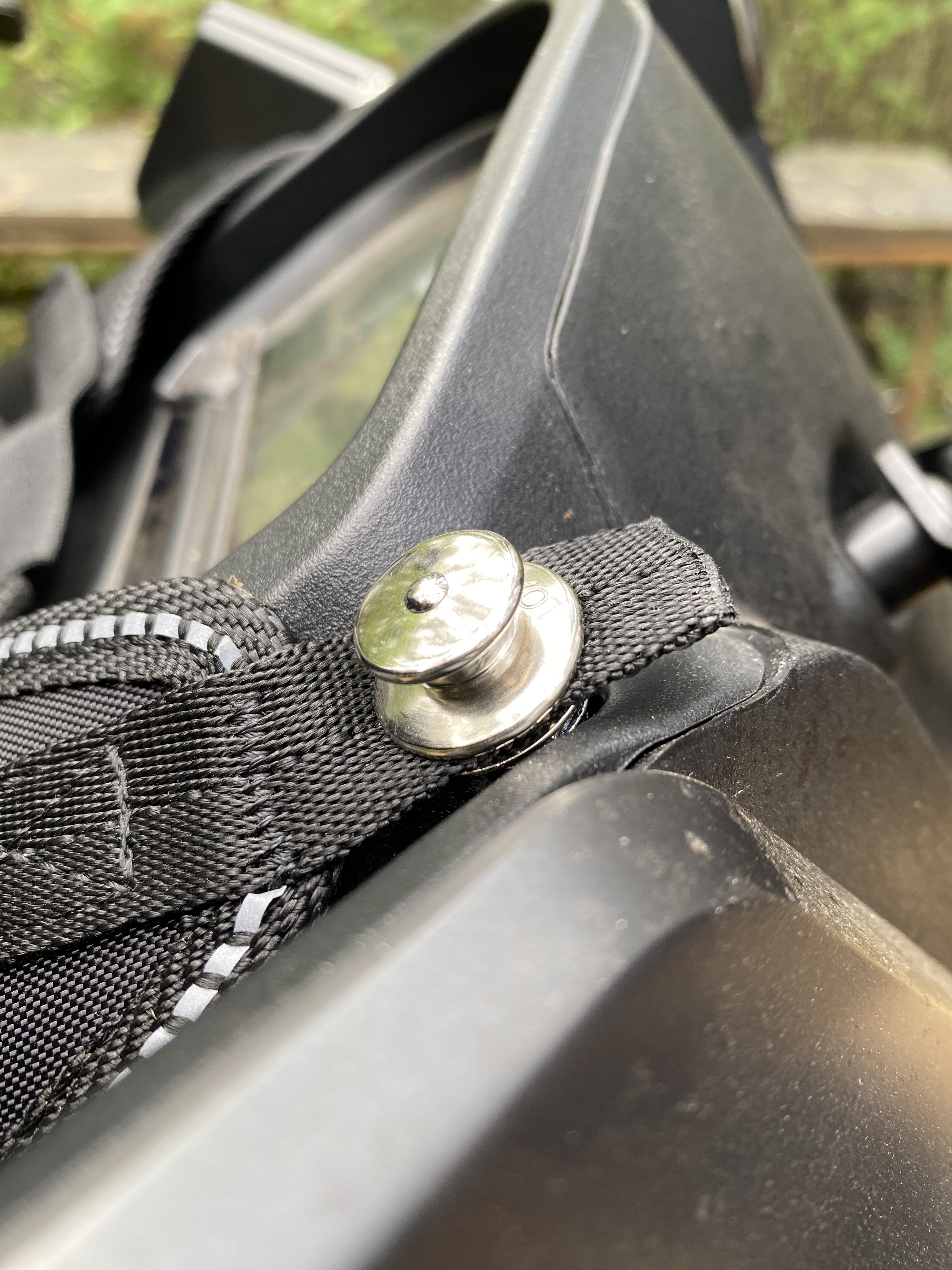 Ich überlege, ob sich die Befestigung auf Tenax-Druckknöpfe umbauen lässt. Dann könnte man auch diese recht behelfsmäßig aussehenden Gurte an der Unterseite weglassen. Man müsste dafür ein paar Löcher bohren, aber die Tenax- (oder Loxx-) Befestiger sehen gar nicht übel aus. Wer es nicht kennt, hier ist ein Video: https://www.youtube.com/watch?v=lHXDpxv1FxE