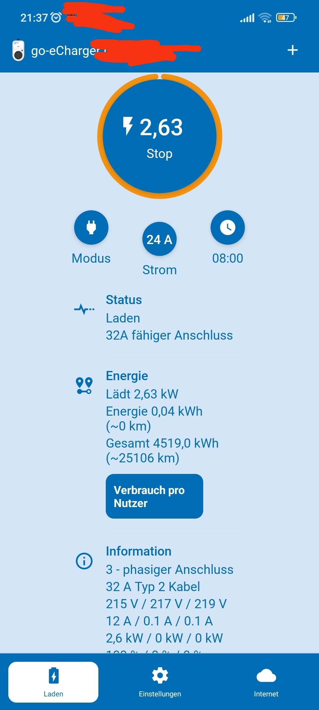 Es ist ein 22kw Kabel und die Alrendo hat 40% Akku. :shock: Auch wenn ich die Wallbox auf 32A Stelle passiert da gar nichts egal ob ich es mit 20% oder bei 80% anschließe :|