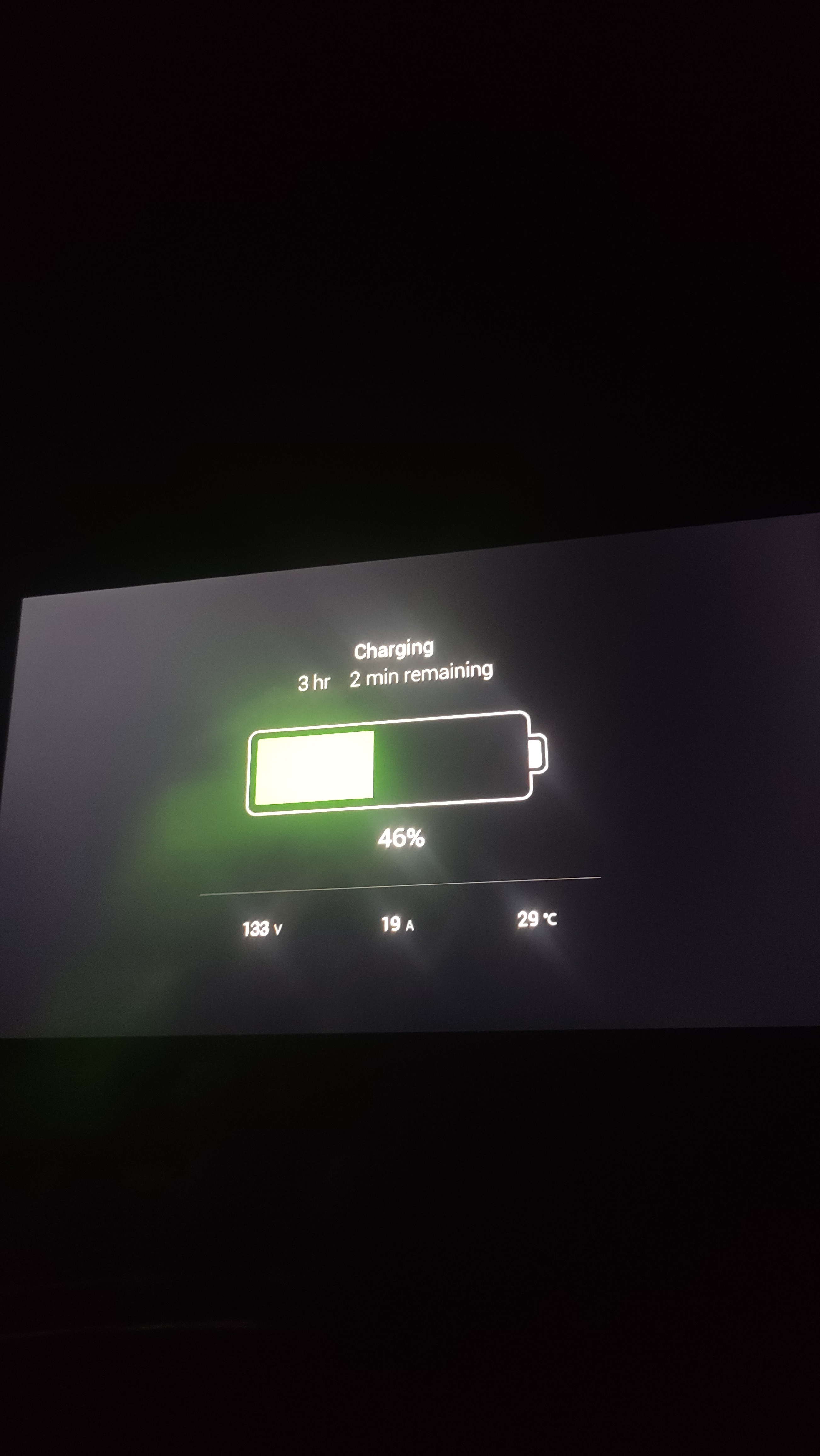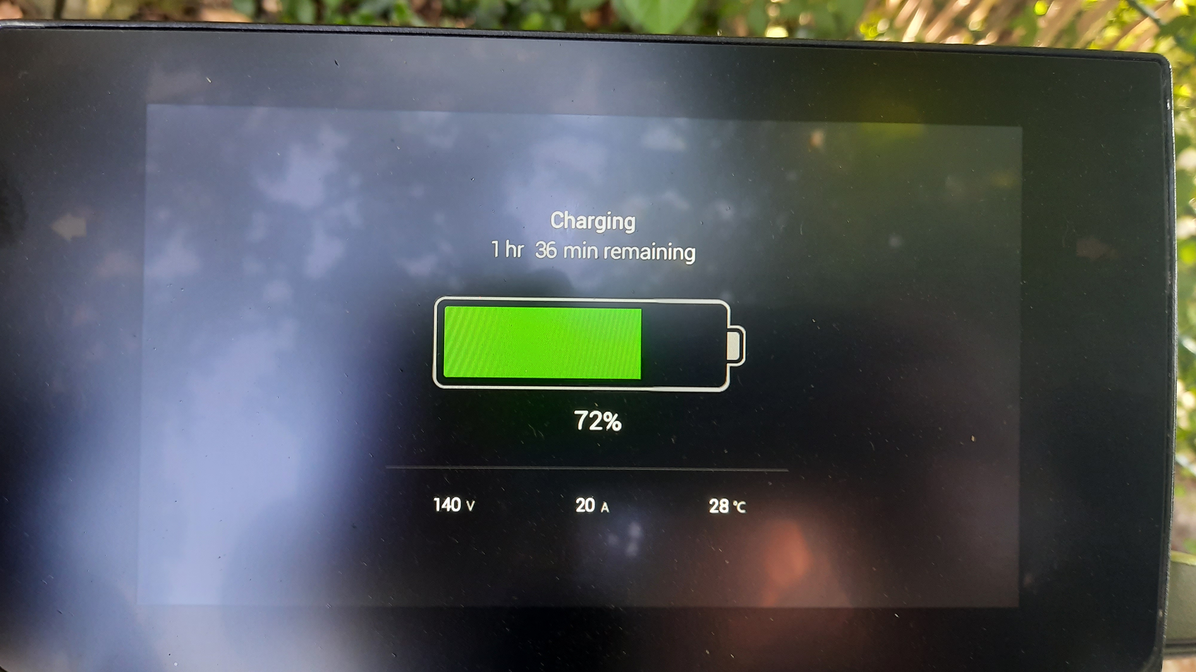 3. Ladevorgang von 72% auf 92%, 3,9 kWh, nach 1:27 h abgebrochen. Die Bilder zeigen den Beginn des 3. Ladevorgangs.