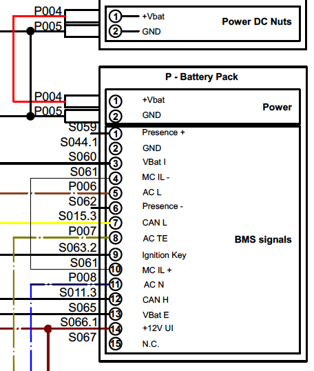 Ich möchte mal den Akku bzw. das BMS "exclusiv" über CAN ansprechen, da ich vermute, dass ich von dort Antwort auf mein 0x1b0 bekomme. Hierzu nehme ich den Akku aus dem Roller - und außer den zwei Hochstromkontakten liegt dann ein mir unbekannter Stecker mit 15 (nur teils beschalteten) Kontakten frei. Kann mir da schon jemand von Euch sagen, welche Kontakte Can Low bzw. Hi sind?