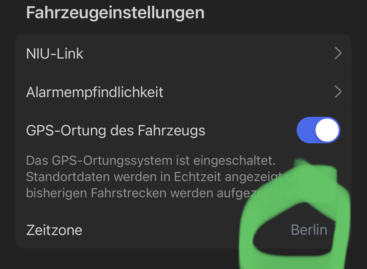Bei Android auf "Ich", den Roller auswählen, dann unter Fahrzeugeinstellungen Zeitzone auswählen.