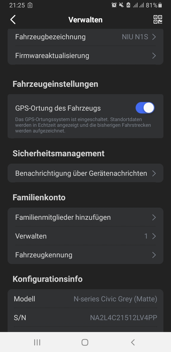 leider kein QR-Code zum scannen und ummelden. Also hab ich den NIU support kontaktiert.