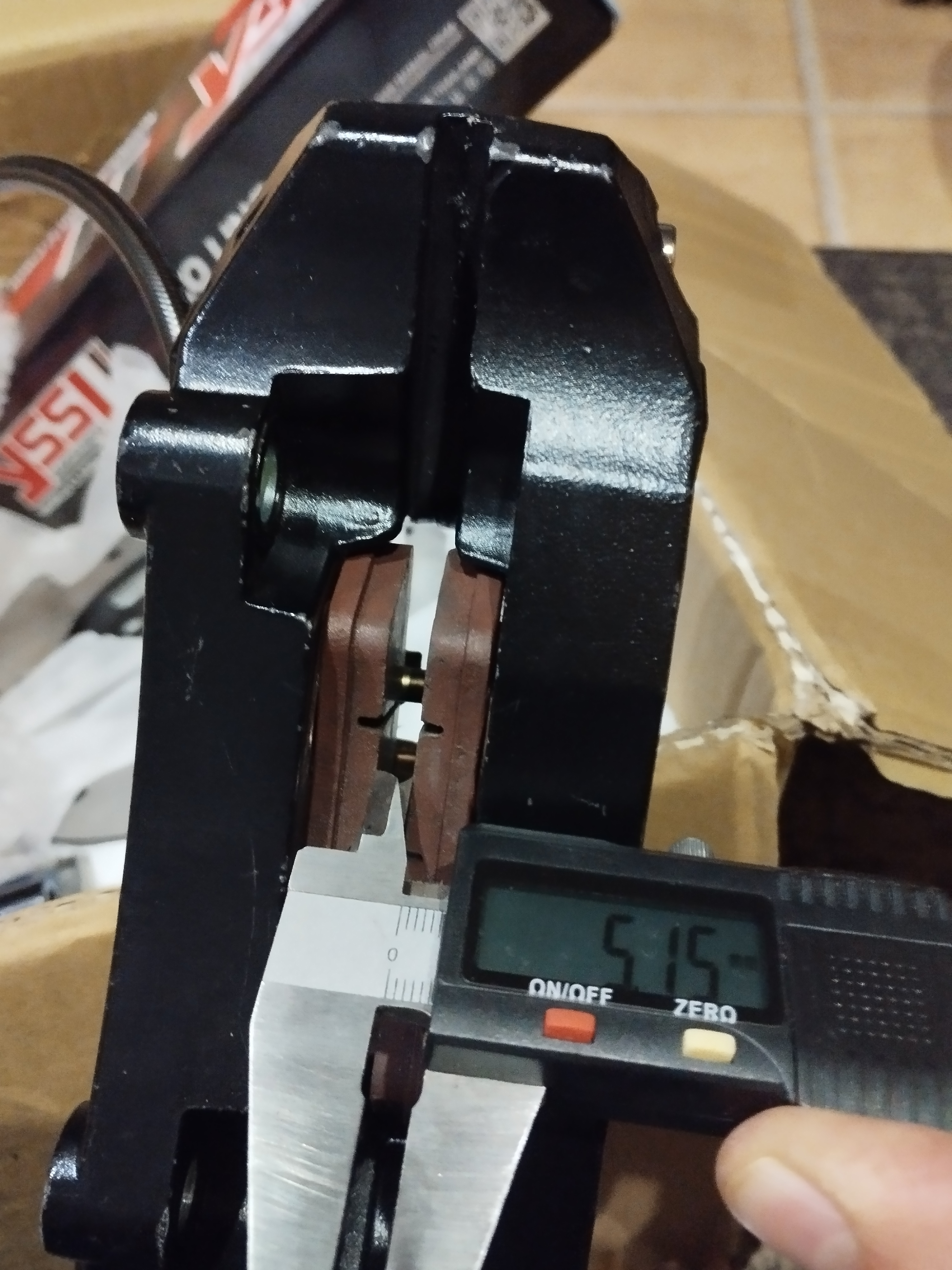 Die Scheiben sind 6mm dick, Platz dürfte dafür genug sein, habe ich mal an meiner Ersatz-Bremsanlage gemessen.