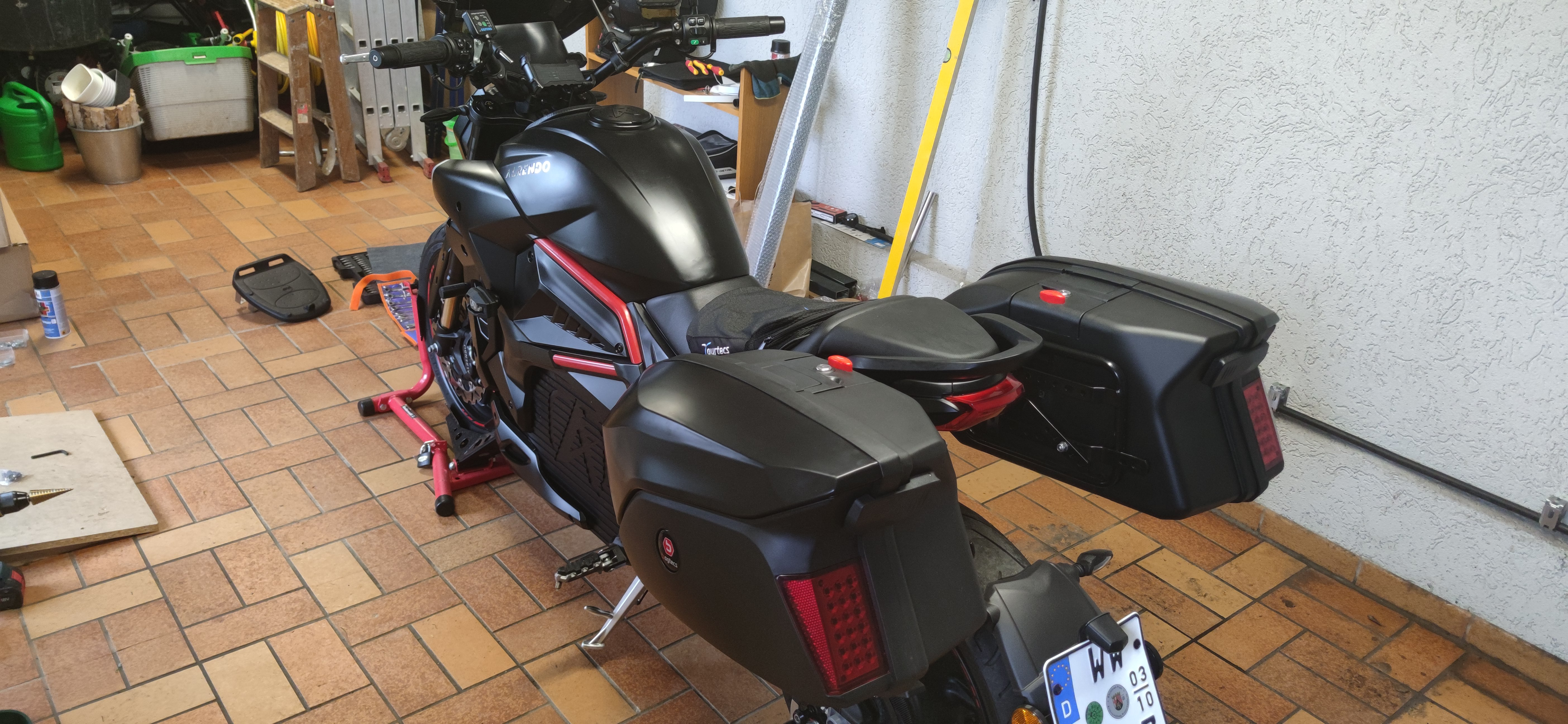 Ich habe mir Spaßeshalber ein Universal-Kofferset bestellt und montiert. Ich brauche das normalerweise nicht, aber haben ist ja bekanntlich besser als brauchen und ab und zu muss man vielleicht doch mal was größeres transportieren.