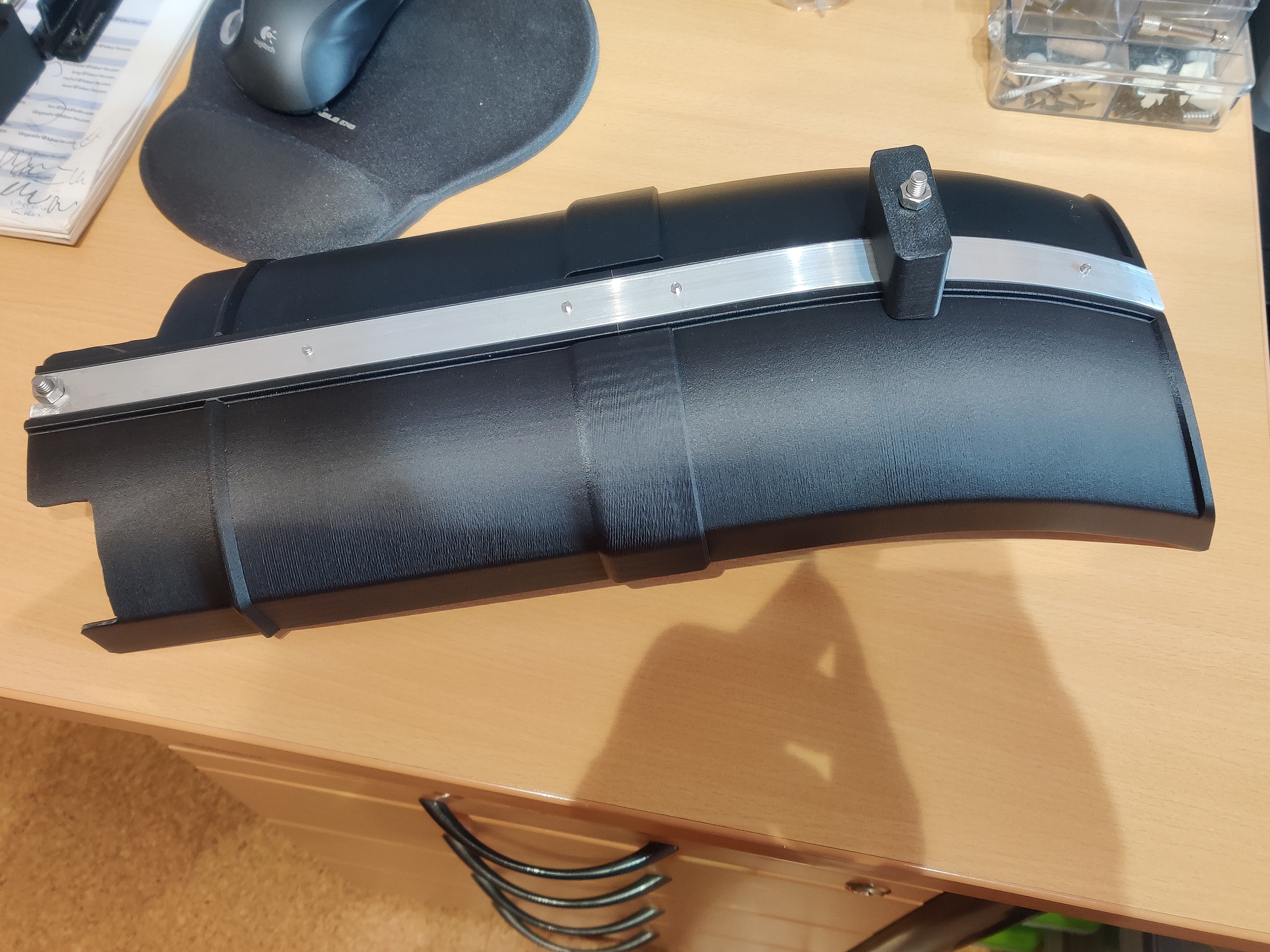 Den Metallsteifen habe ich etwas verbreitert (2x20x450 mm) und auch den Fender selbst auf 3mm verstärkt.