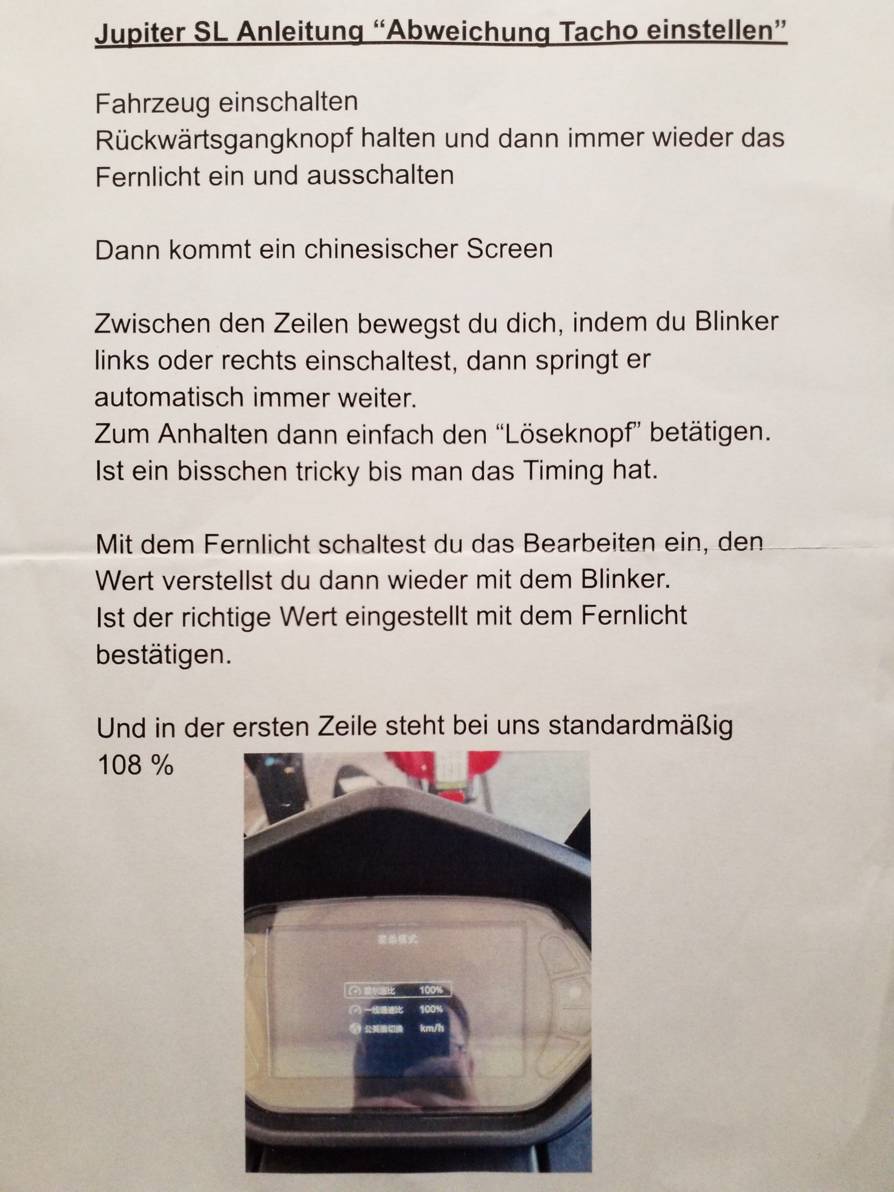 Henne1968 hat geschrieben: Fr 24. Nov 2023, 18:00 Hallo in die Runde, ich lese schon eine Weile mit und möchte gern etwas mit Euch teilen, was mir der der Inhaber meines Rollerladens in Leipzig besorgt hat. Das mit den "Chinesischen Kilometern" hat mich immer gestört. Um Abhilfe zu schaffen hat er mit diese Beschreibung beim Händler besorgt. Ich habe es nicht selber umgesetzt, sondern der Ladenbesitzer hat es beim Routinecheck mit erledigt. Es funktioniert bei mir zumindest. Die Höchstgeschwindigkeit liegt jetzt bei 112 "Deutschen Kmh".Die Originalreifen von Kenda habe ich dieses Jahr nach 20 000 Kilometern gegen Pirellis Allwetterreifen "Angel Scooter " getauscht. Ein Unterschied um Welten. Sichere Straßenlage, kleinerer Wendekreis, ganz anderer Kippwinkel um eine Kurve anzusteuern und das Flattern des Vorderrades bei ca. 70 kmh hat spürbar nachgelassen.Ein neues Lenkungslager war nach ca. 15 000 Kilometern auch fällig. Jetzt bin ich in 15 Monaten bis auf diese "Kleinigkeiten" 26 000 Kilometer gefahren. Und jeden Tag werden es 110 km mehr. Soviel zu meinem "Langzeitexperiment". Motek, ich verfolge dein Langzeitexperiment mit großer Freude, bin übrigens aus Taucha, also aus Deiner Nähe. Gruß Henne