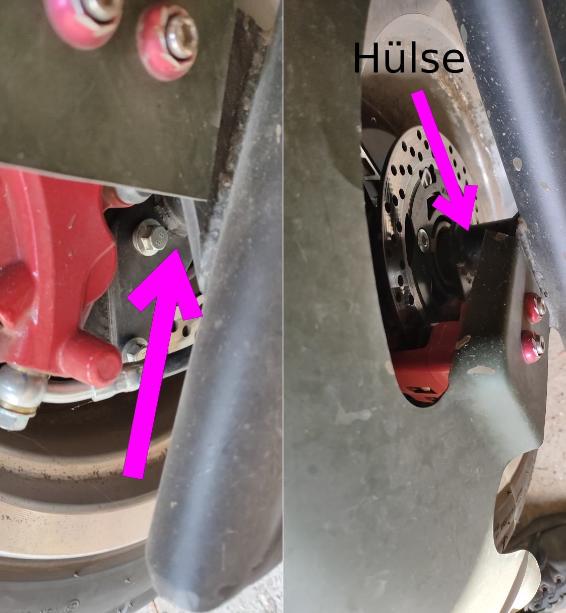 Auf dem rechten Bild sieht man den Bremssatztelhalter, der an der Hülse angeschweißt ist.